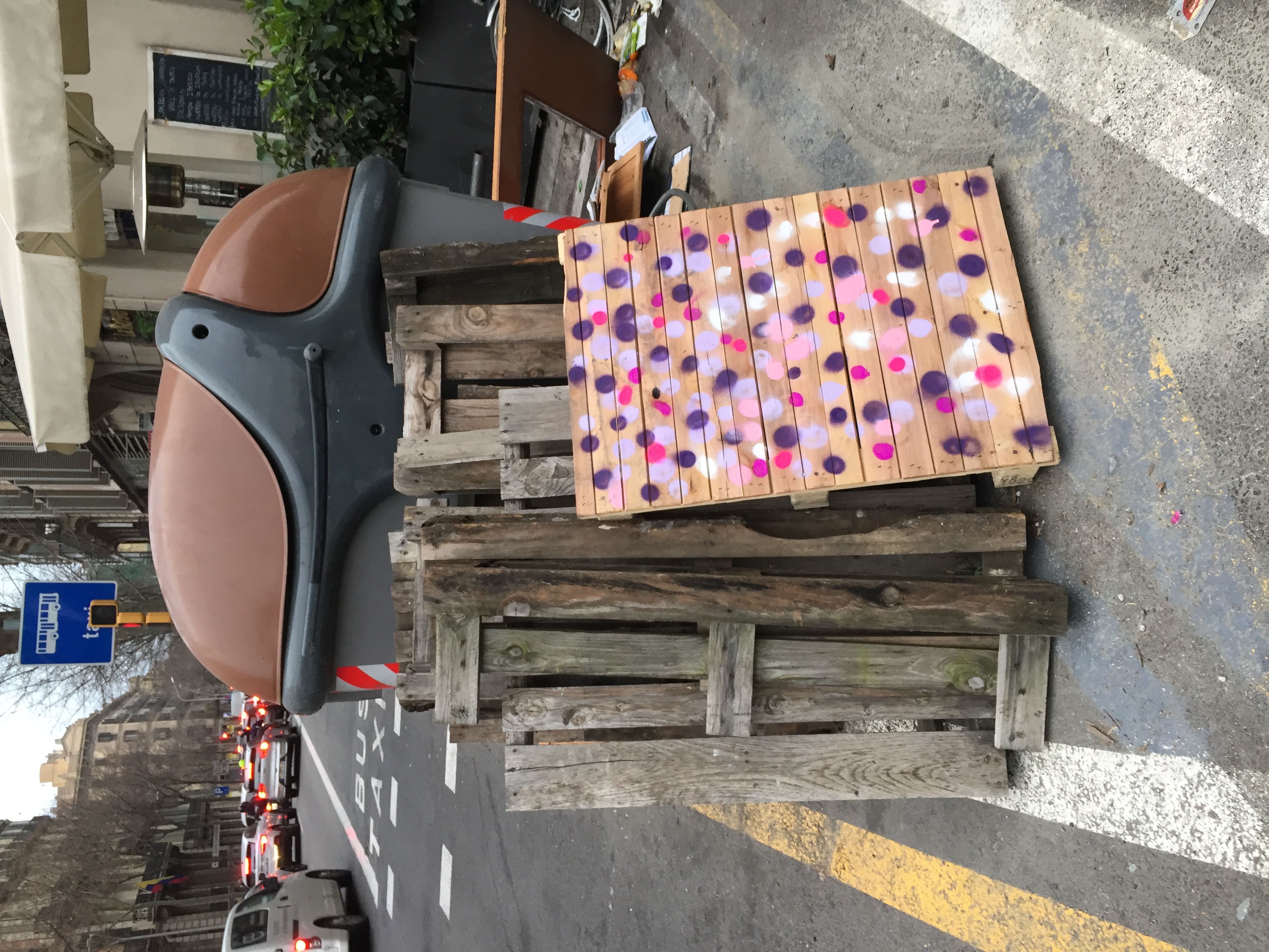 Rule: Only dots. Ride around the city and paint only dots on the different surfaces you will encounter.