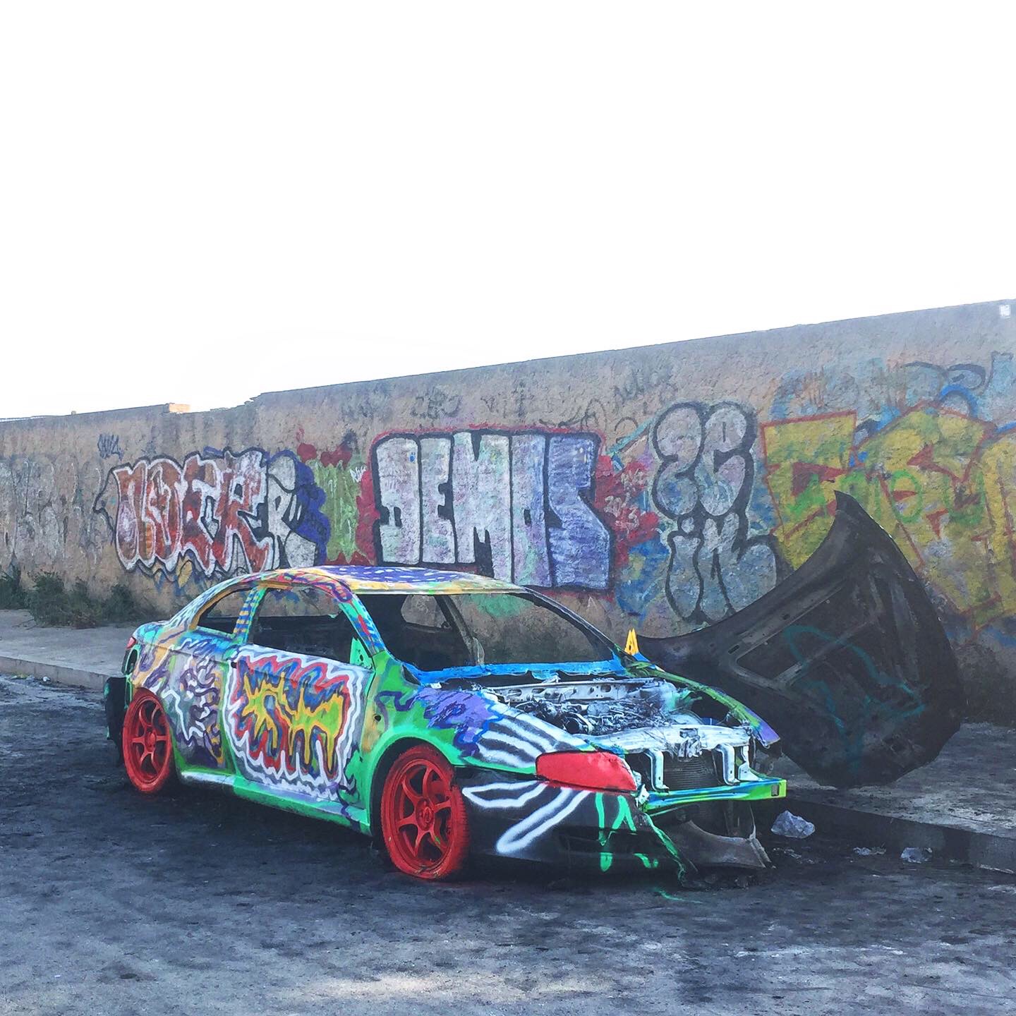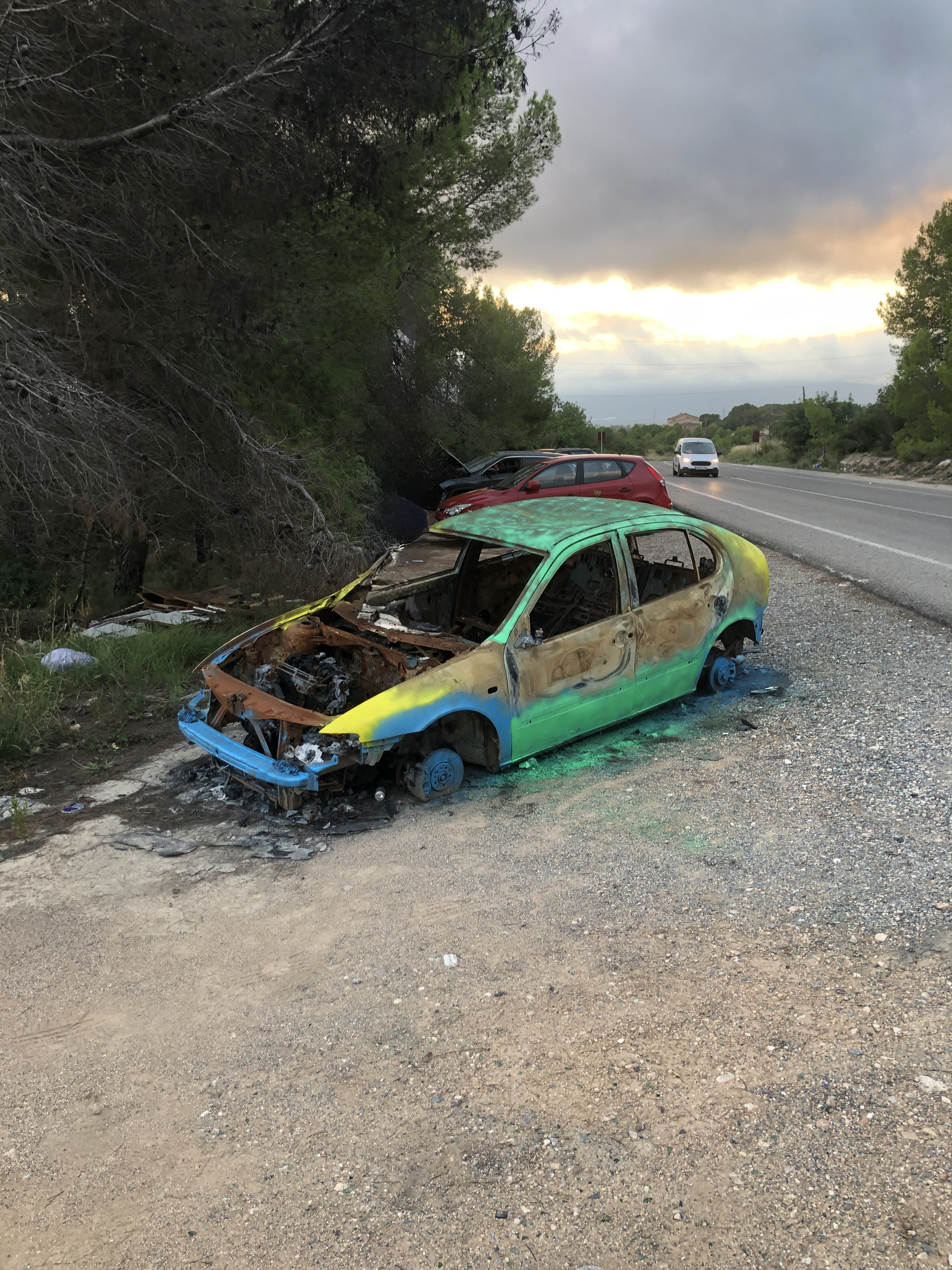 Rule: Paint a series of burned cars.