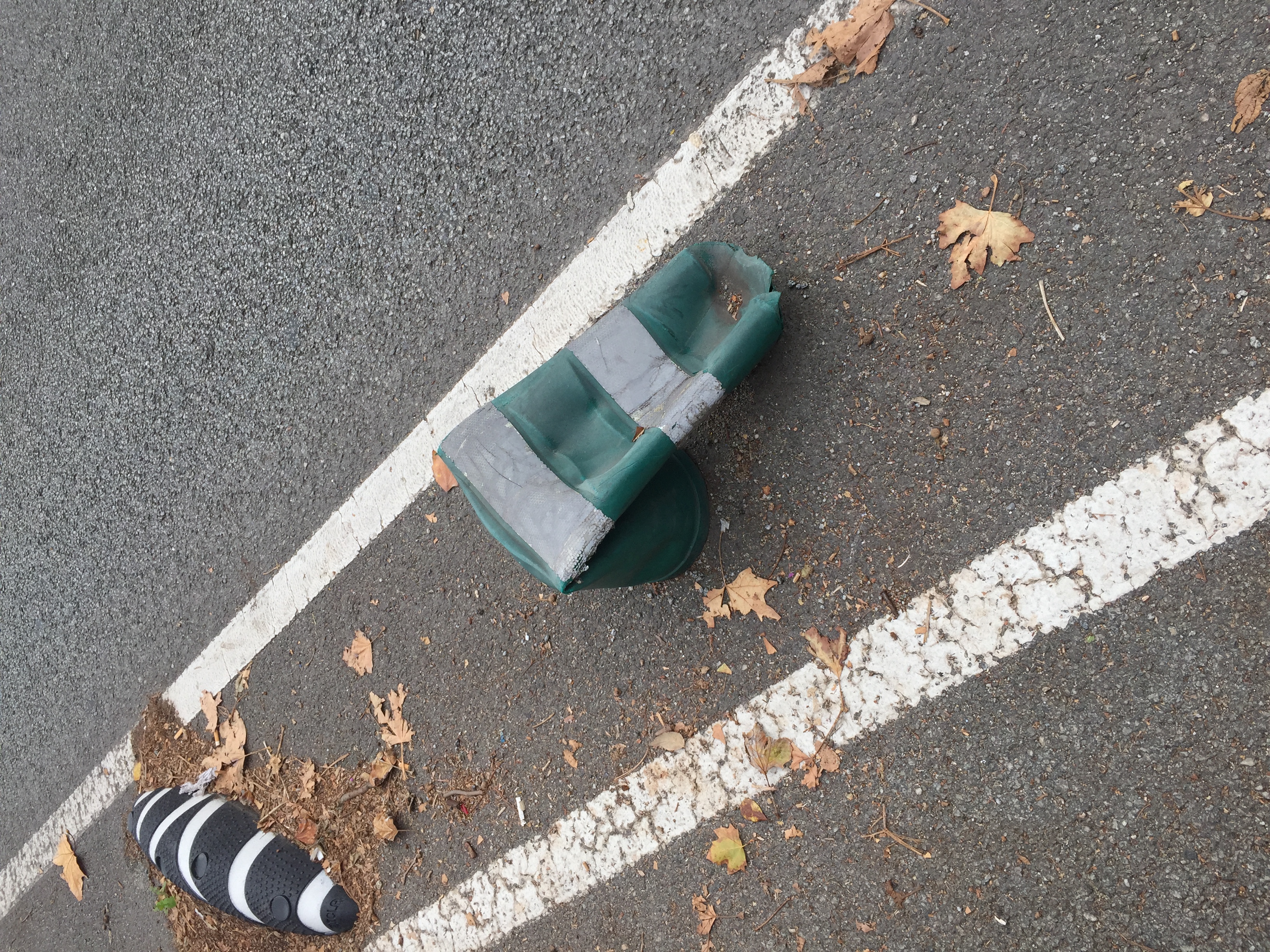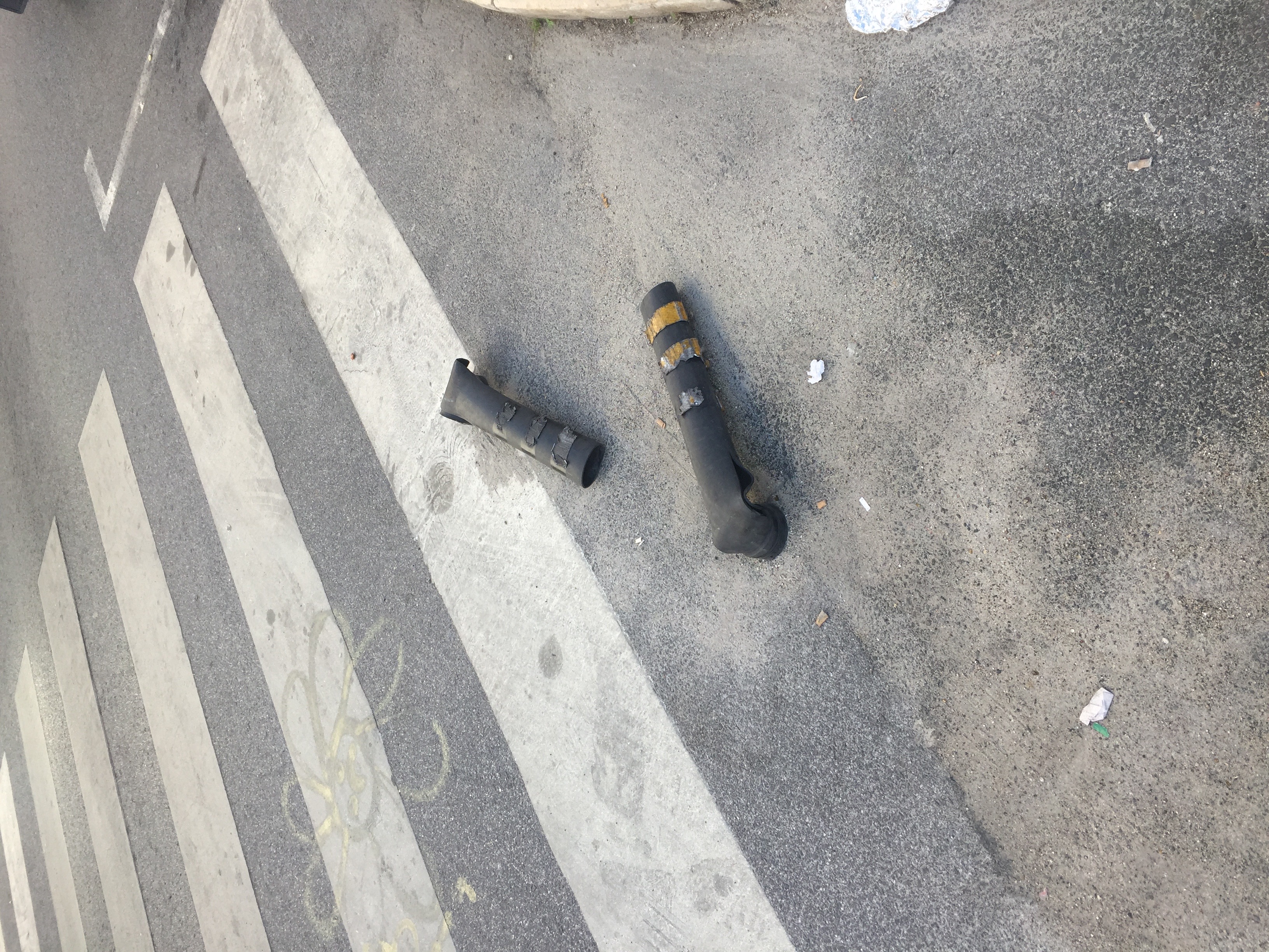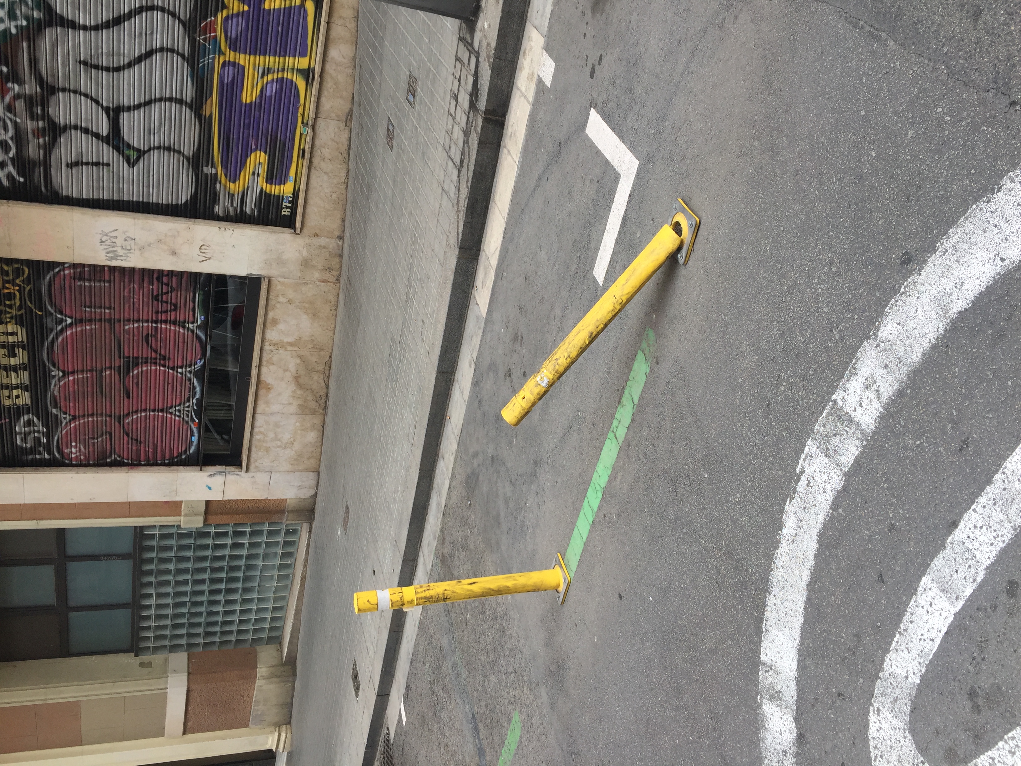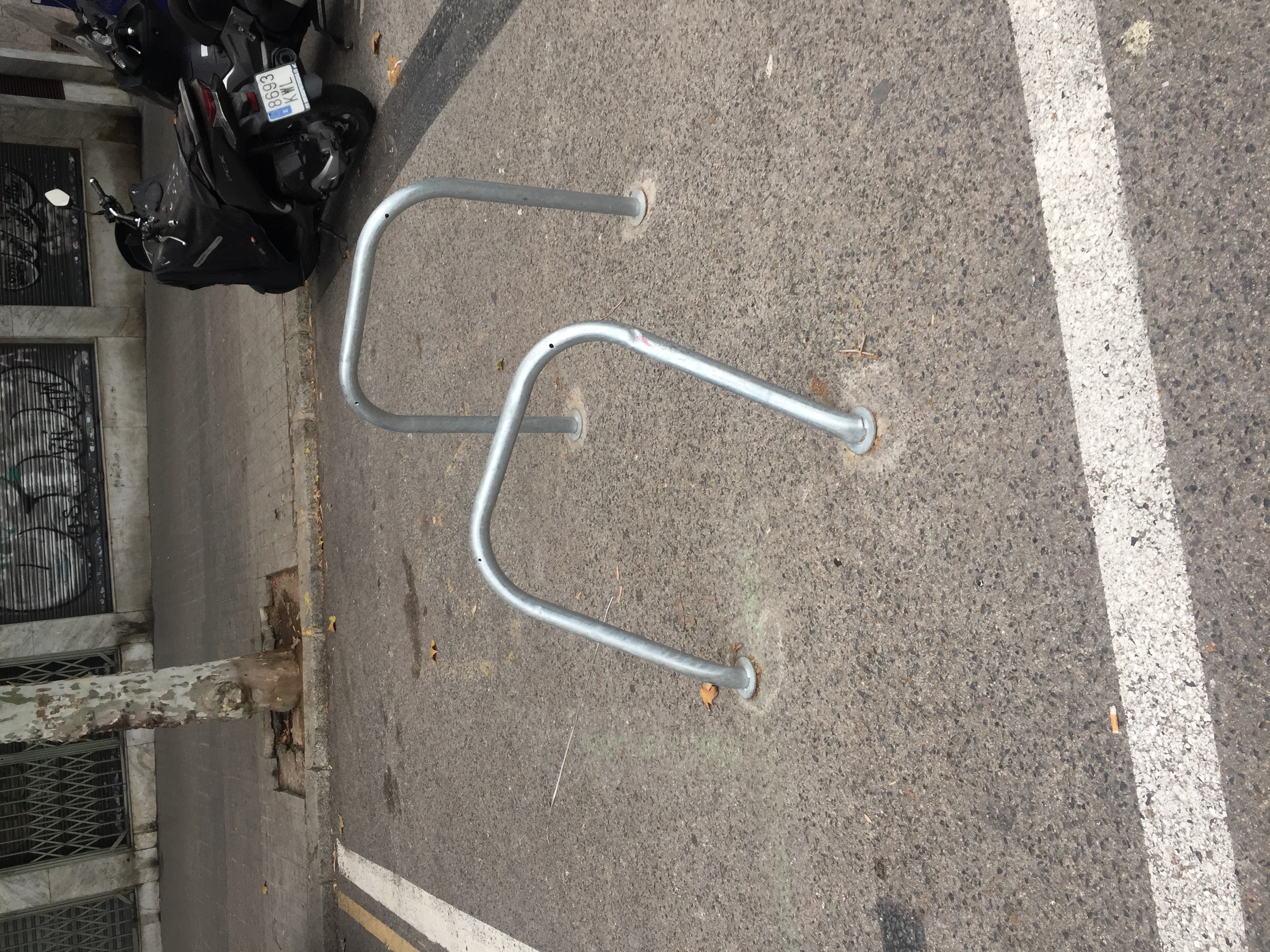 Other elements present in the urban fabric and often injured are metal arches used as bicycle parking places.