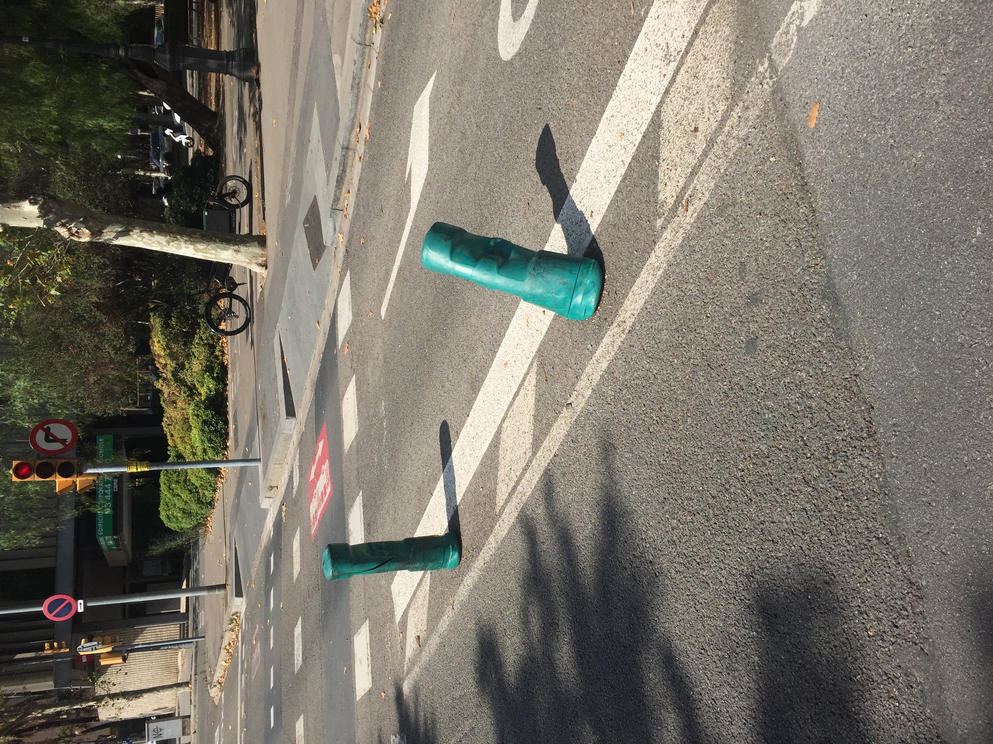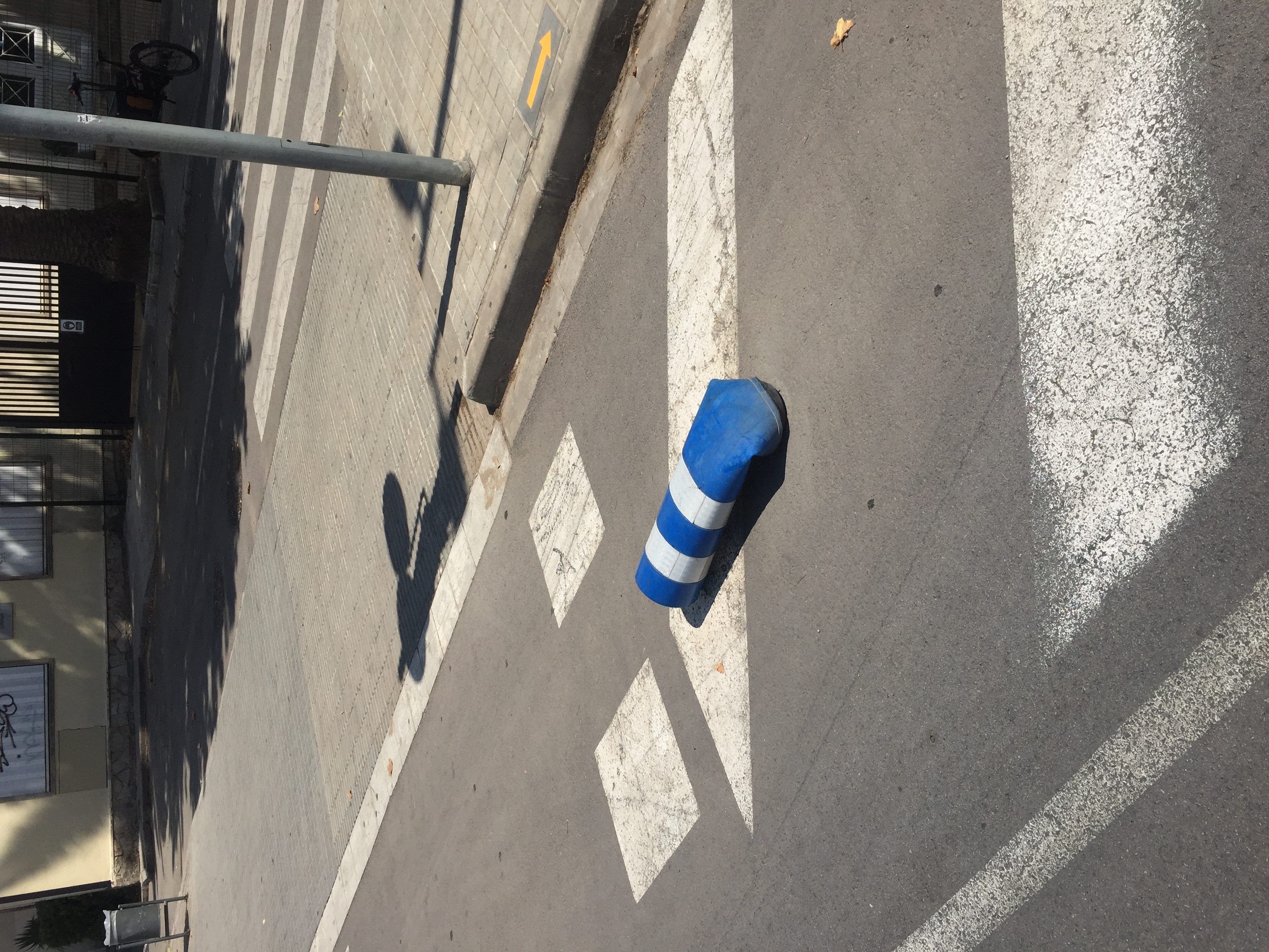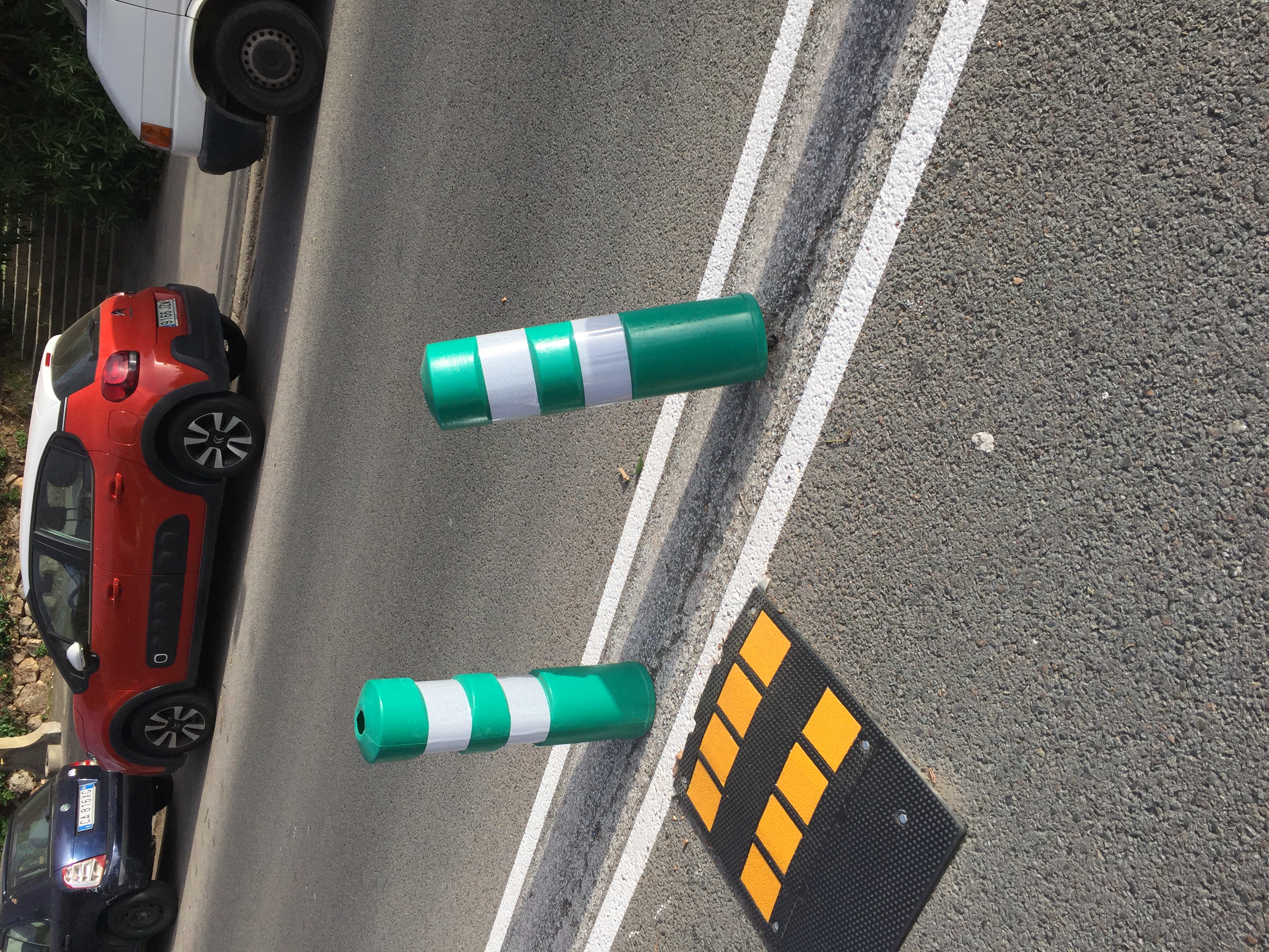 They are always anchored to the asphalt by means of a base positioned on the ground and their chromatic variety varies randomly as long as it guarantees a certain visibility.