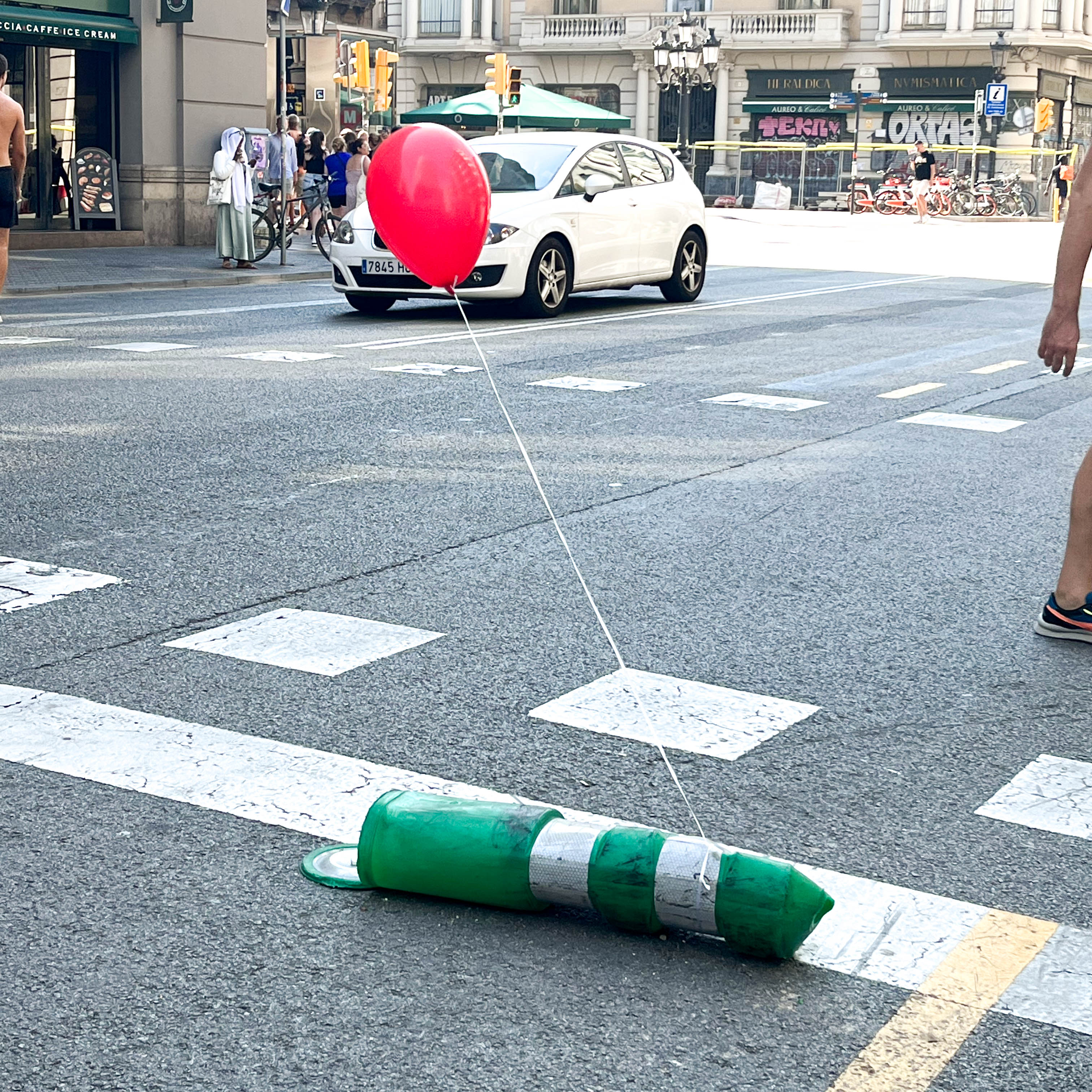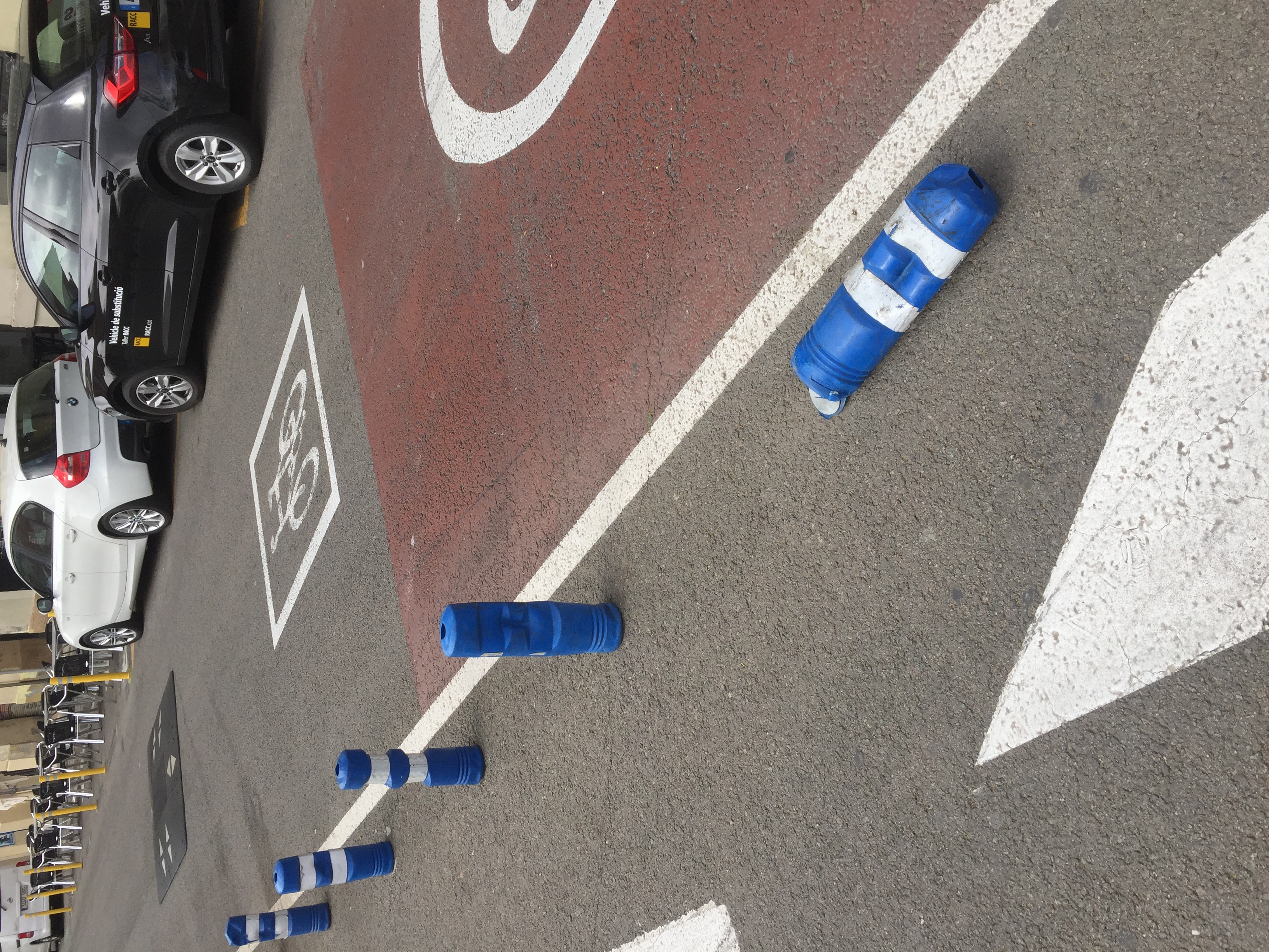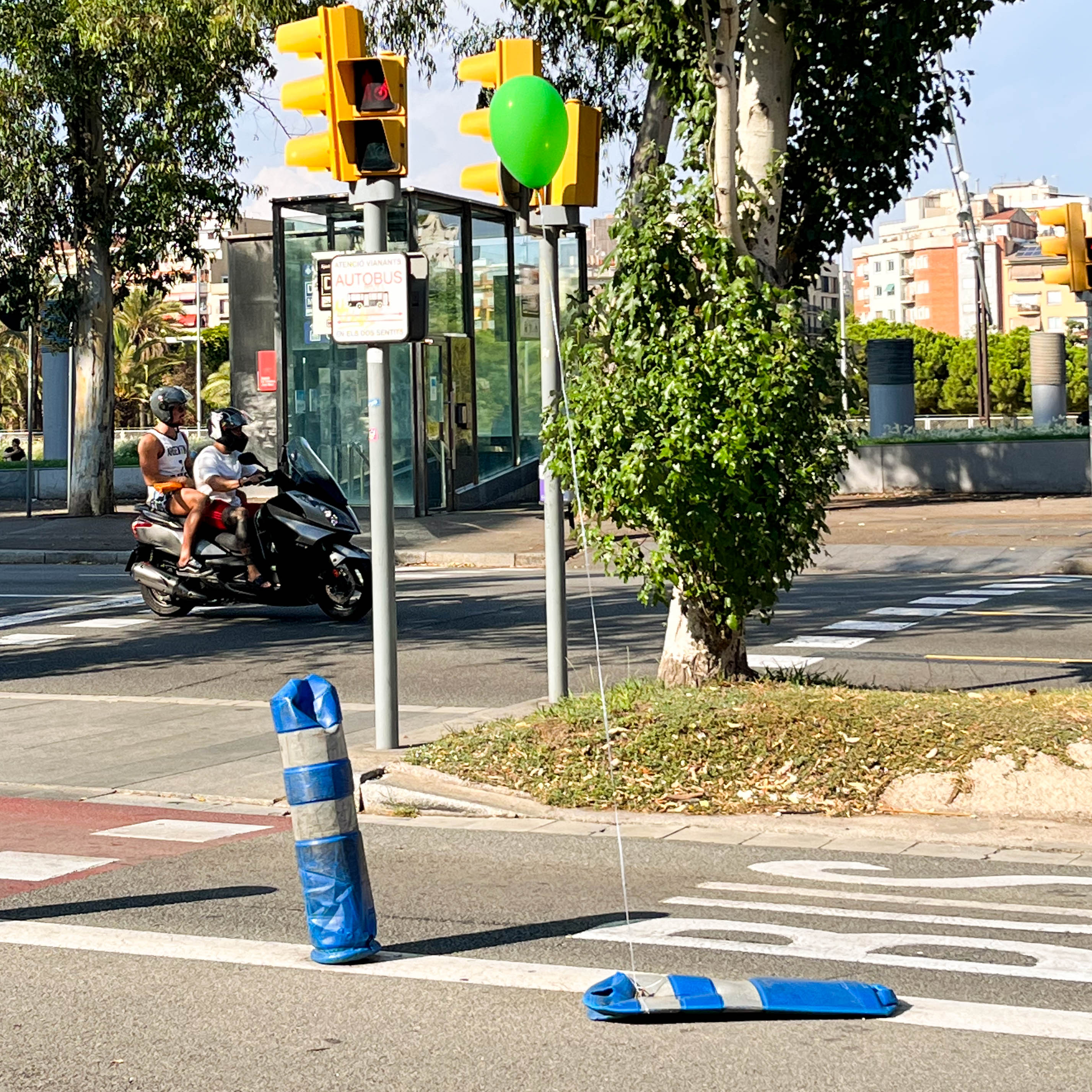They are always anchored to the asphalt by means of a base positioned on the ground and their chromatic variety varies randomly as long as it guarantees a certain visibility.