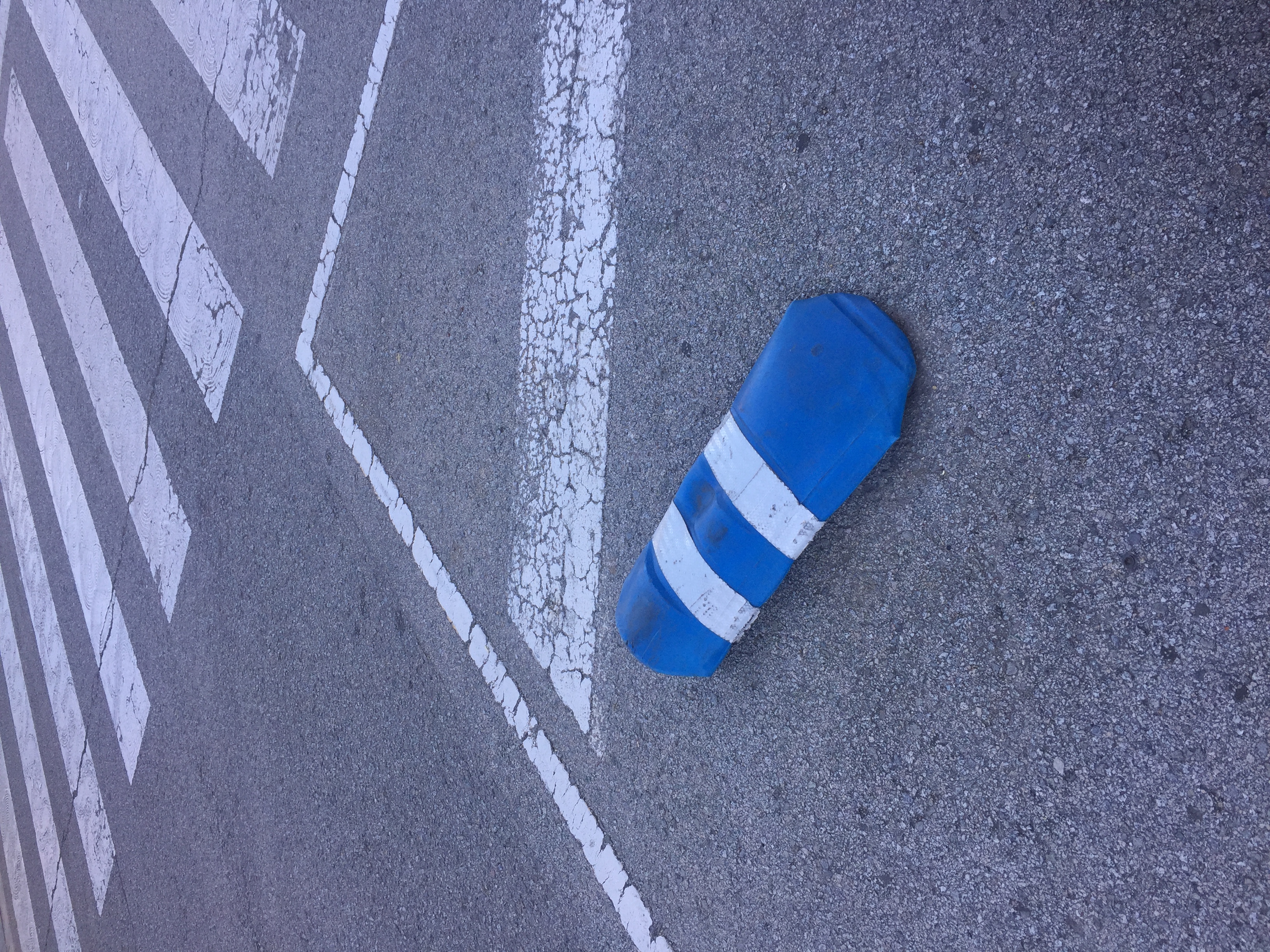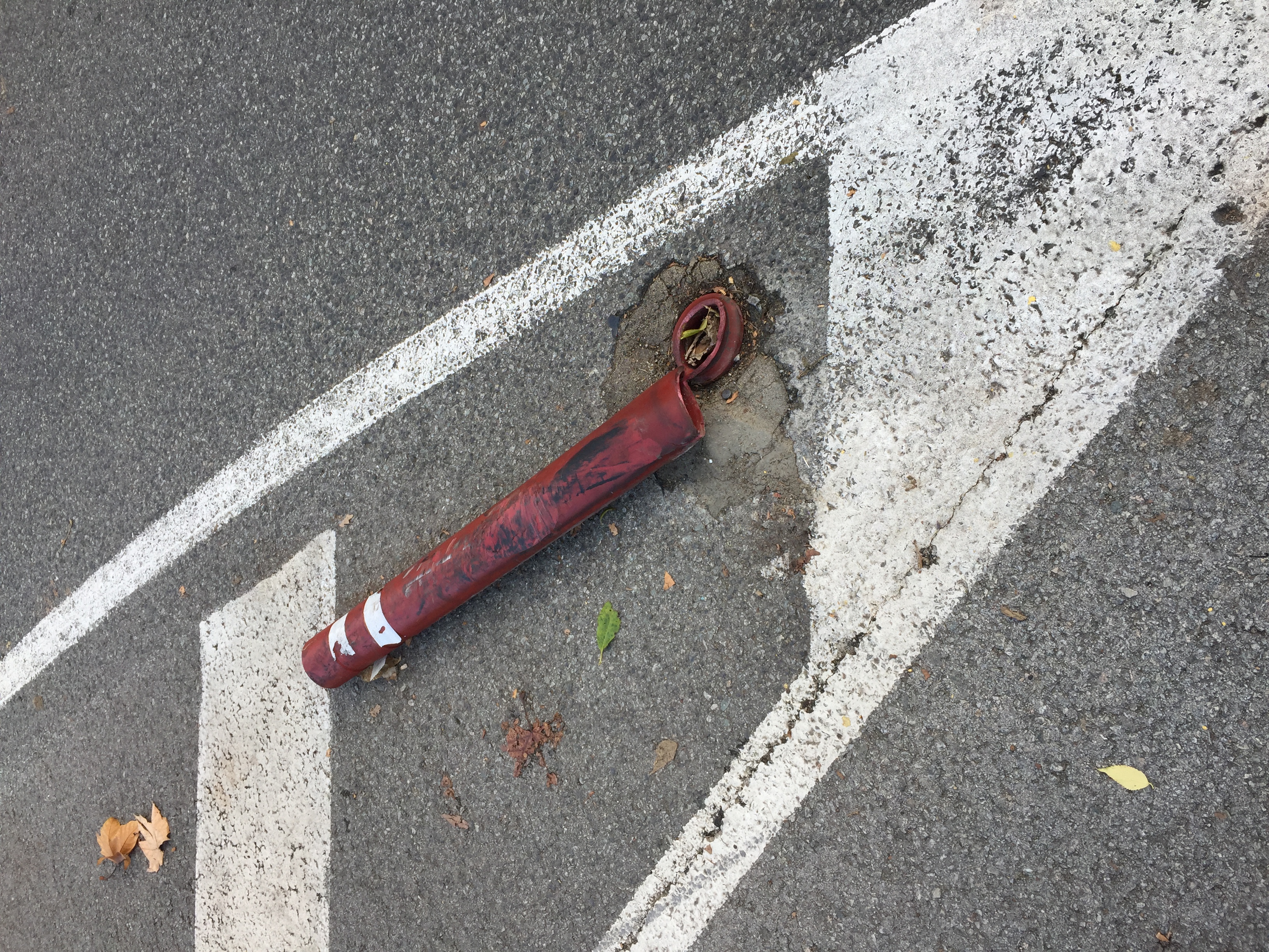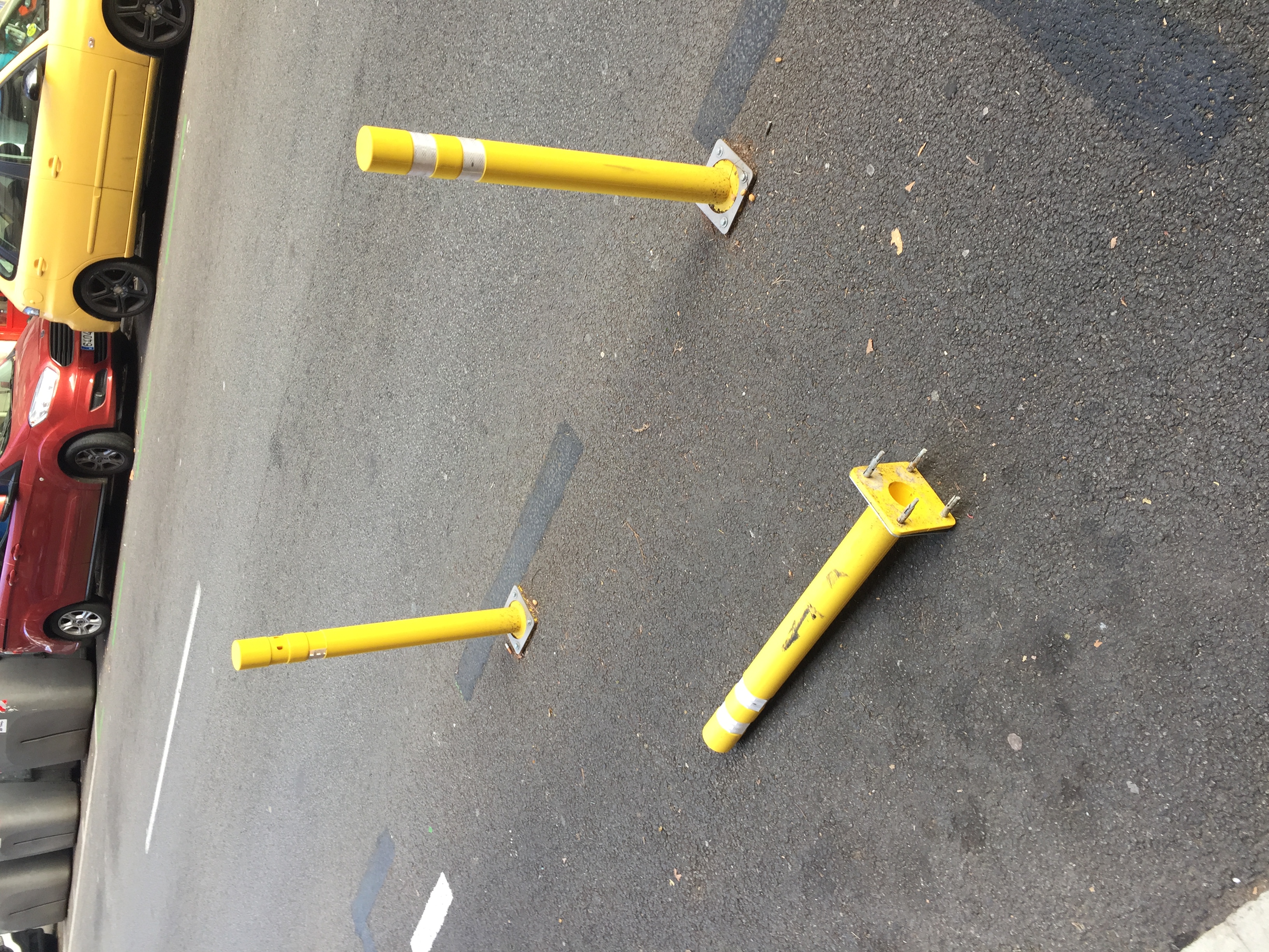 I have always found fascinating those bollards that are differentiated from others by their shape, defined and redefined by some accidental manoeuvre.