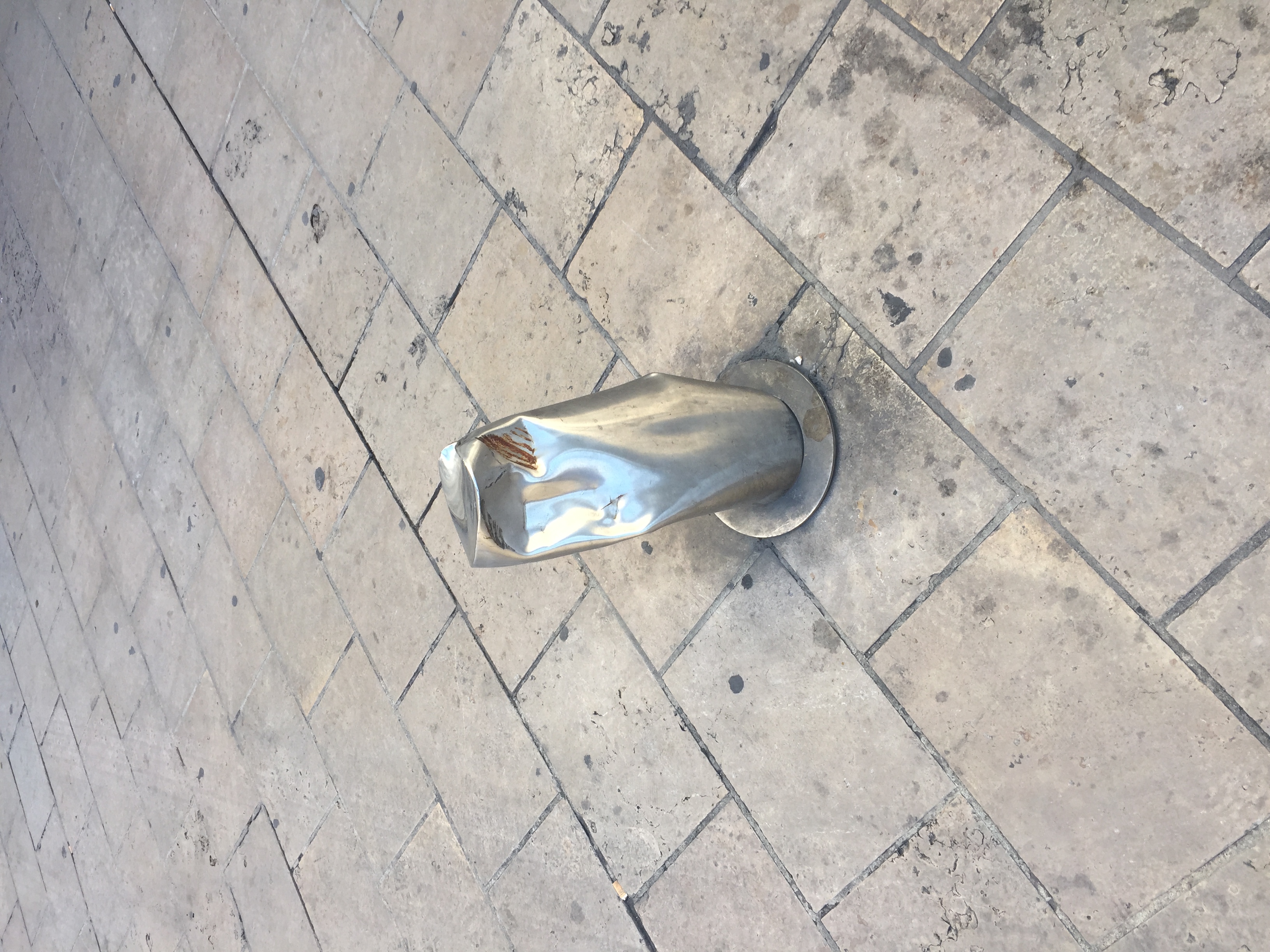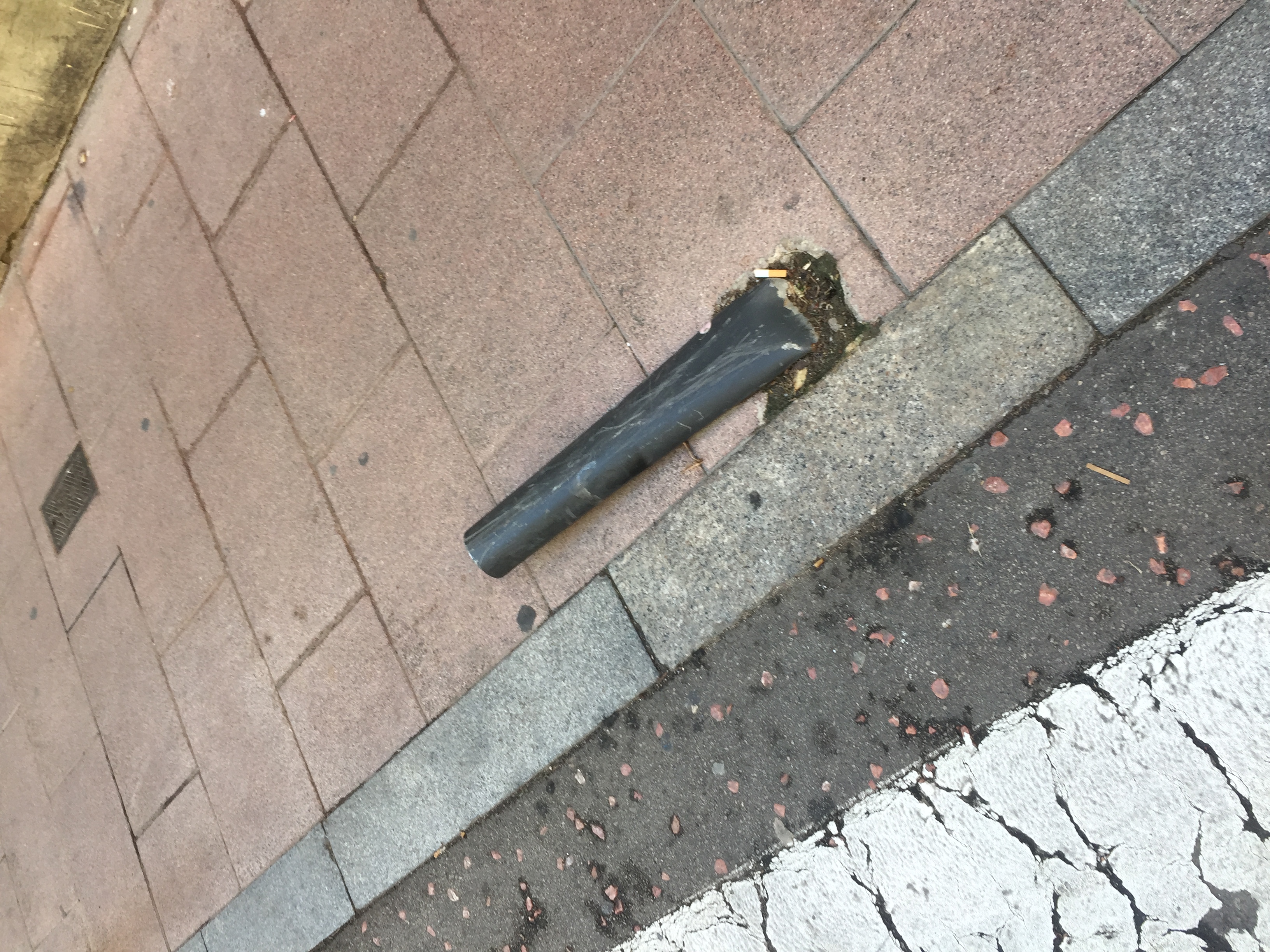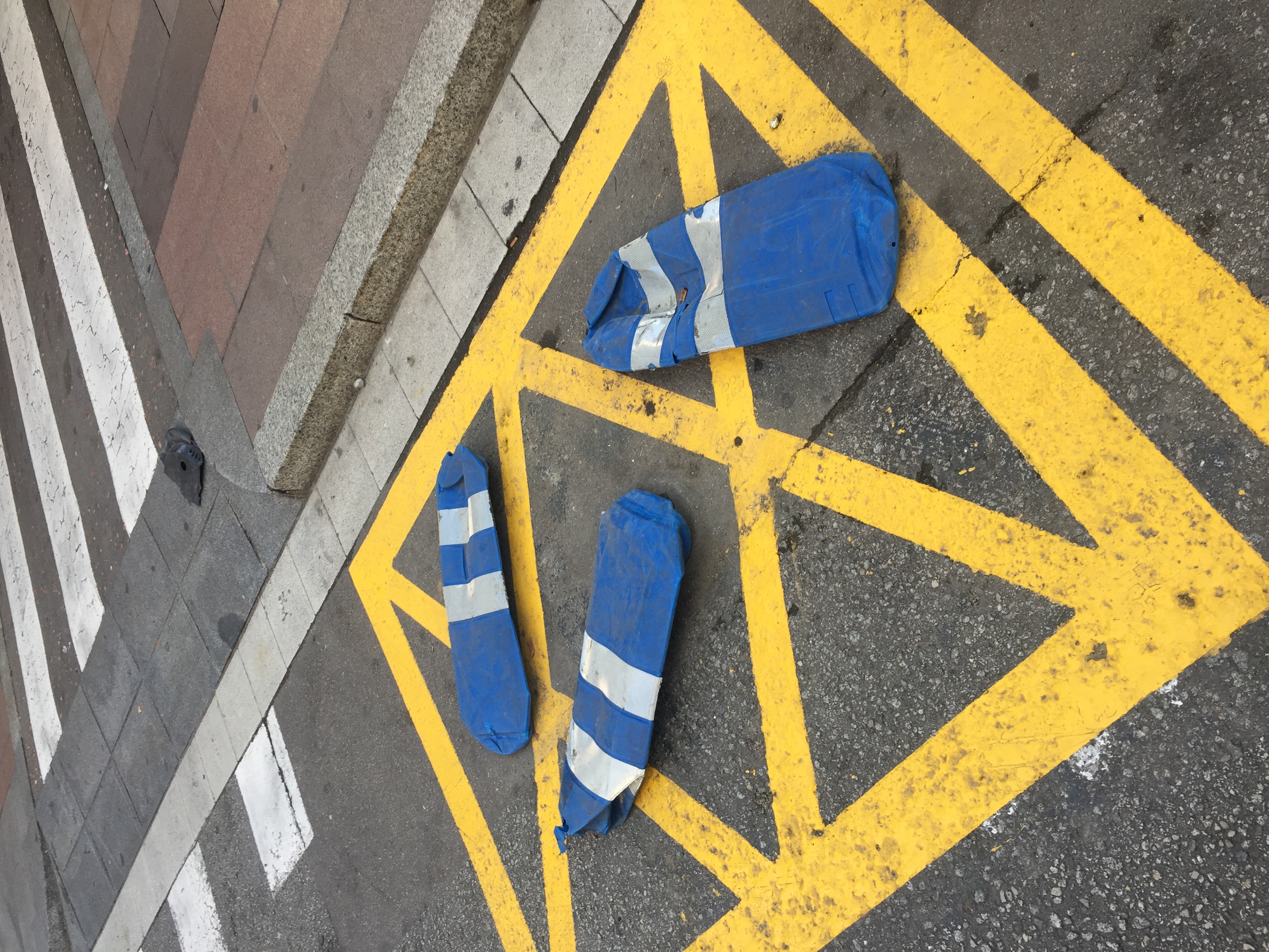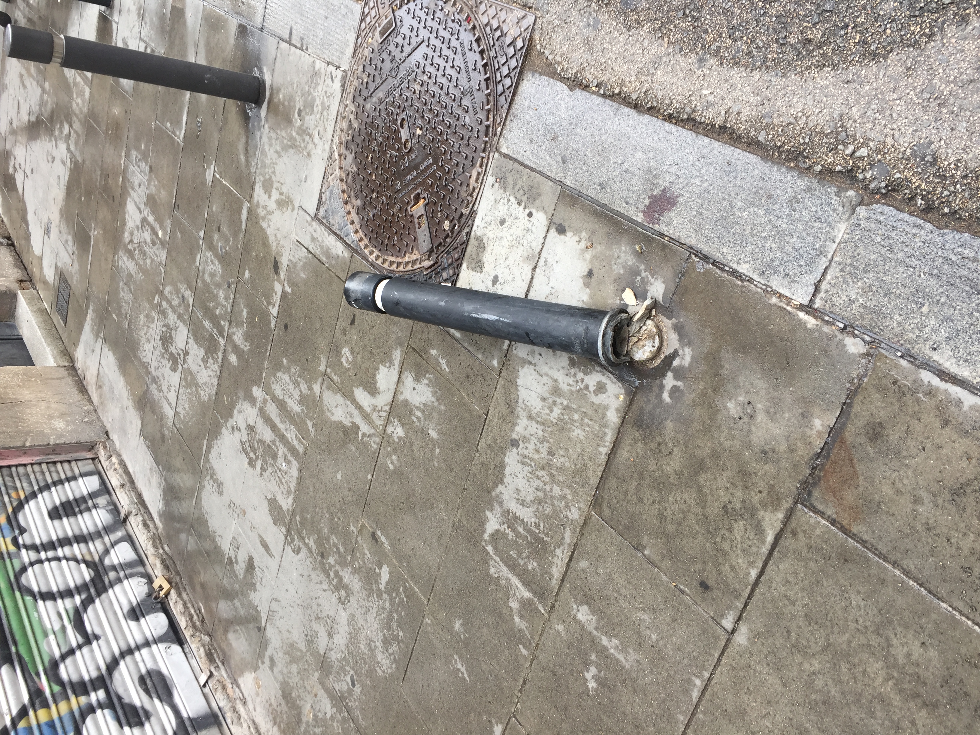 I have always found fascinating those bollards that are differentiated from others by their shape, defined and redefined by some accidental manoeuvre.