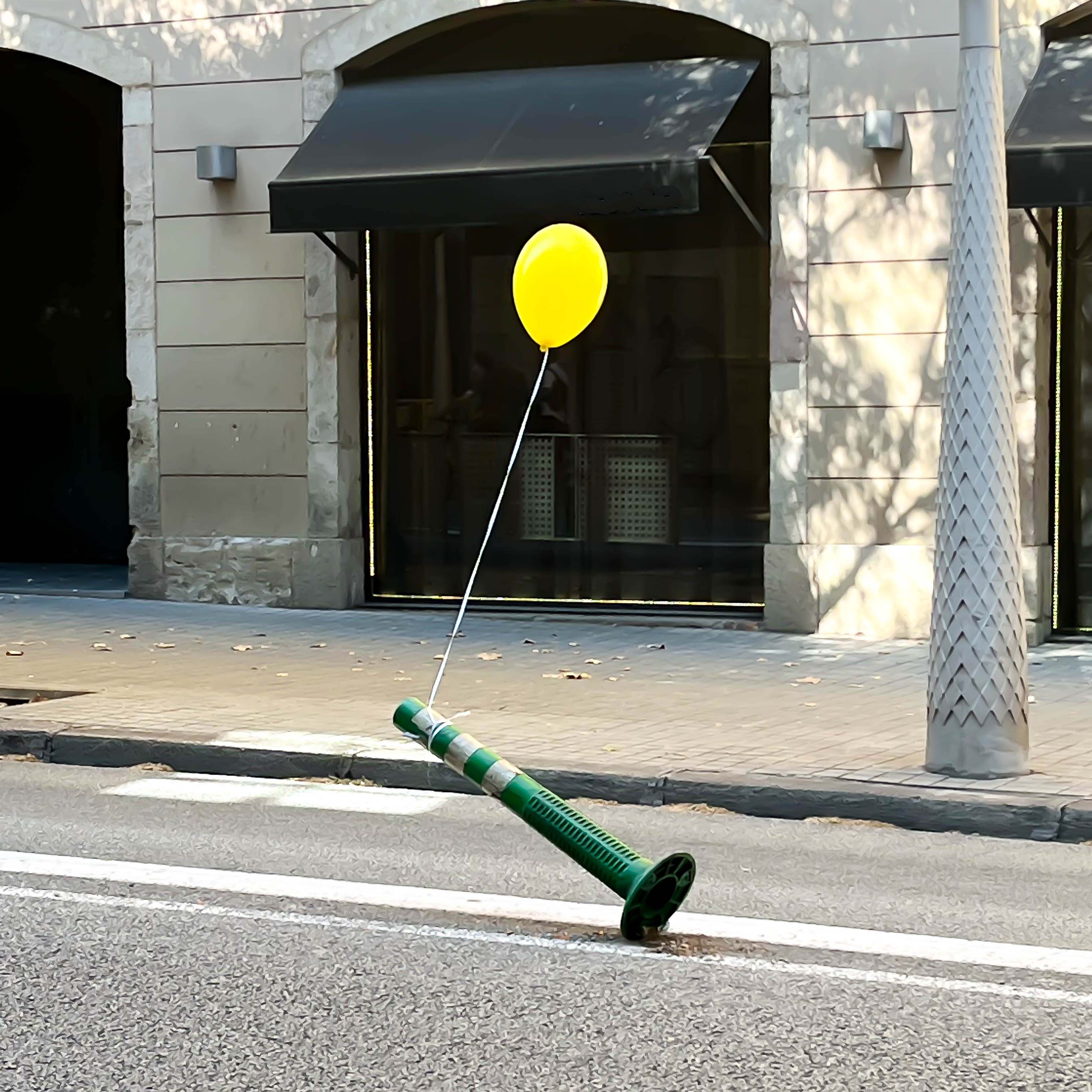 The use of helium-filled balloons allows me to produce a very simple game that attempts to "lift" those now-folded bollards by giving them, if even for a short time, a different value.
