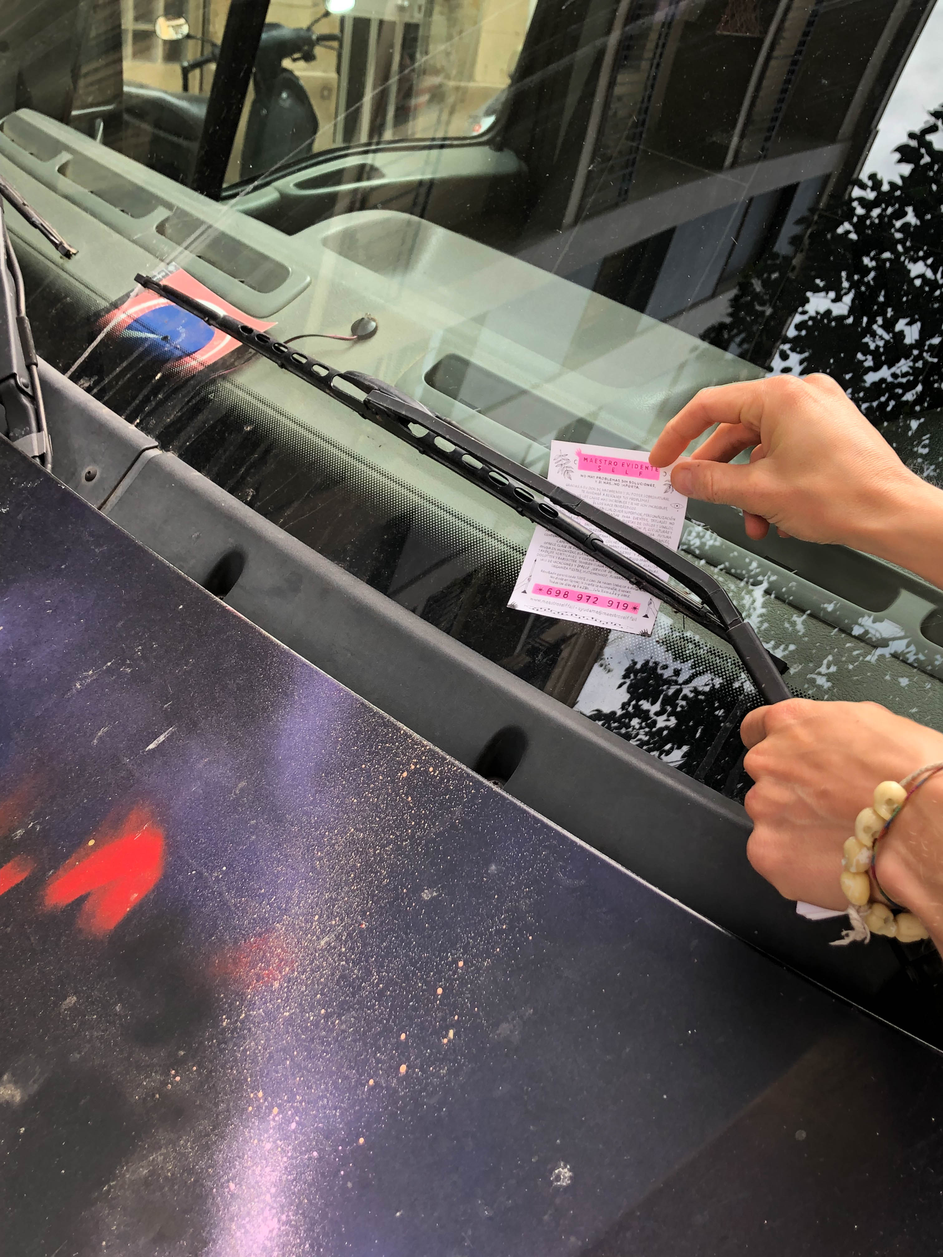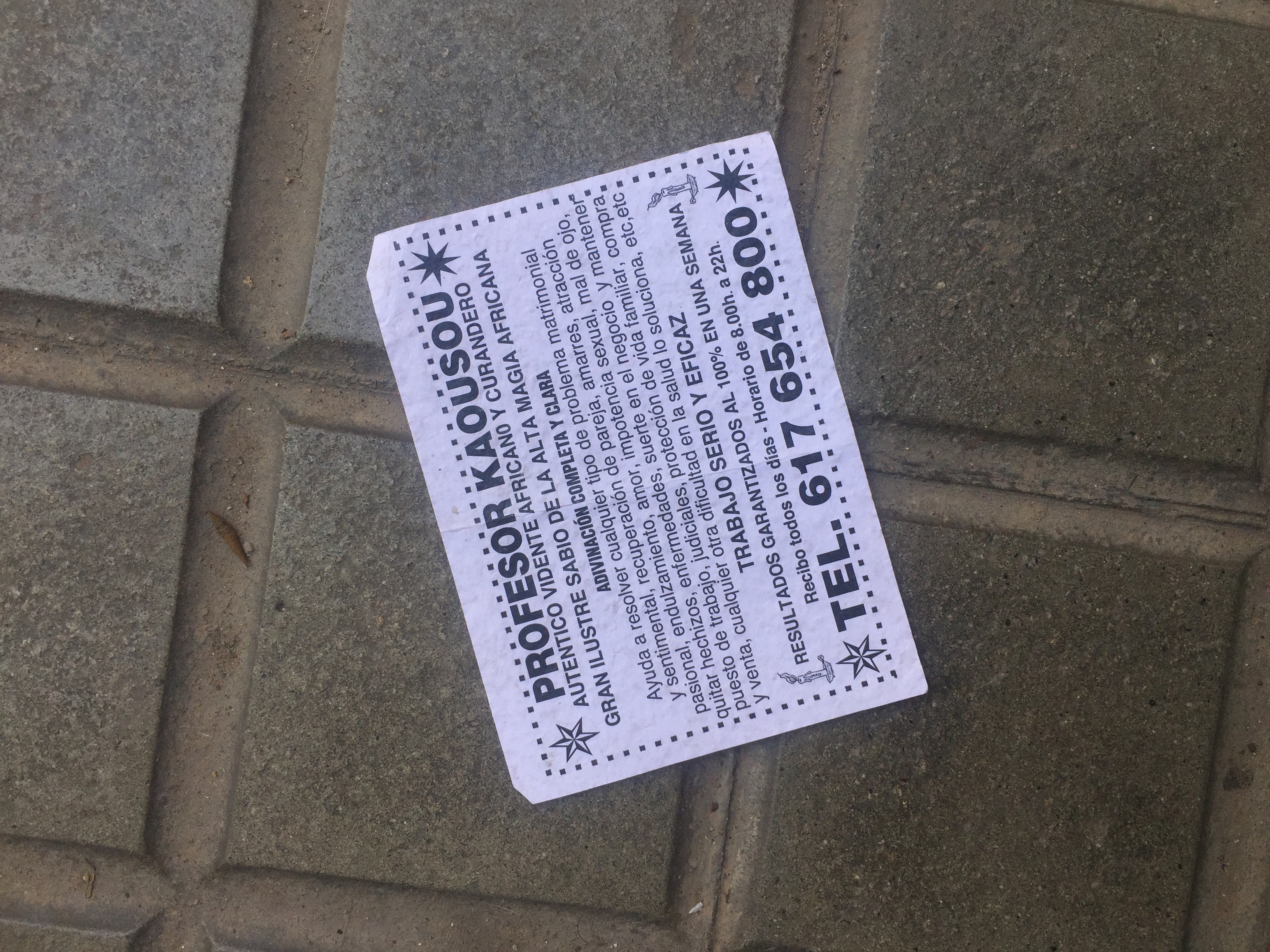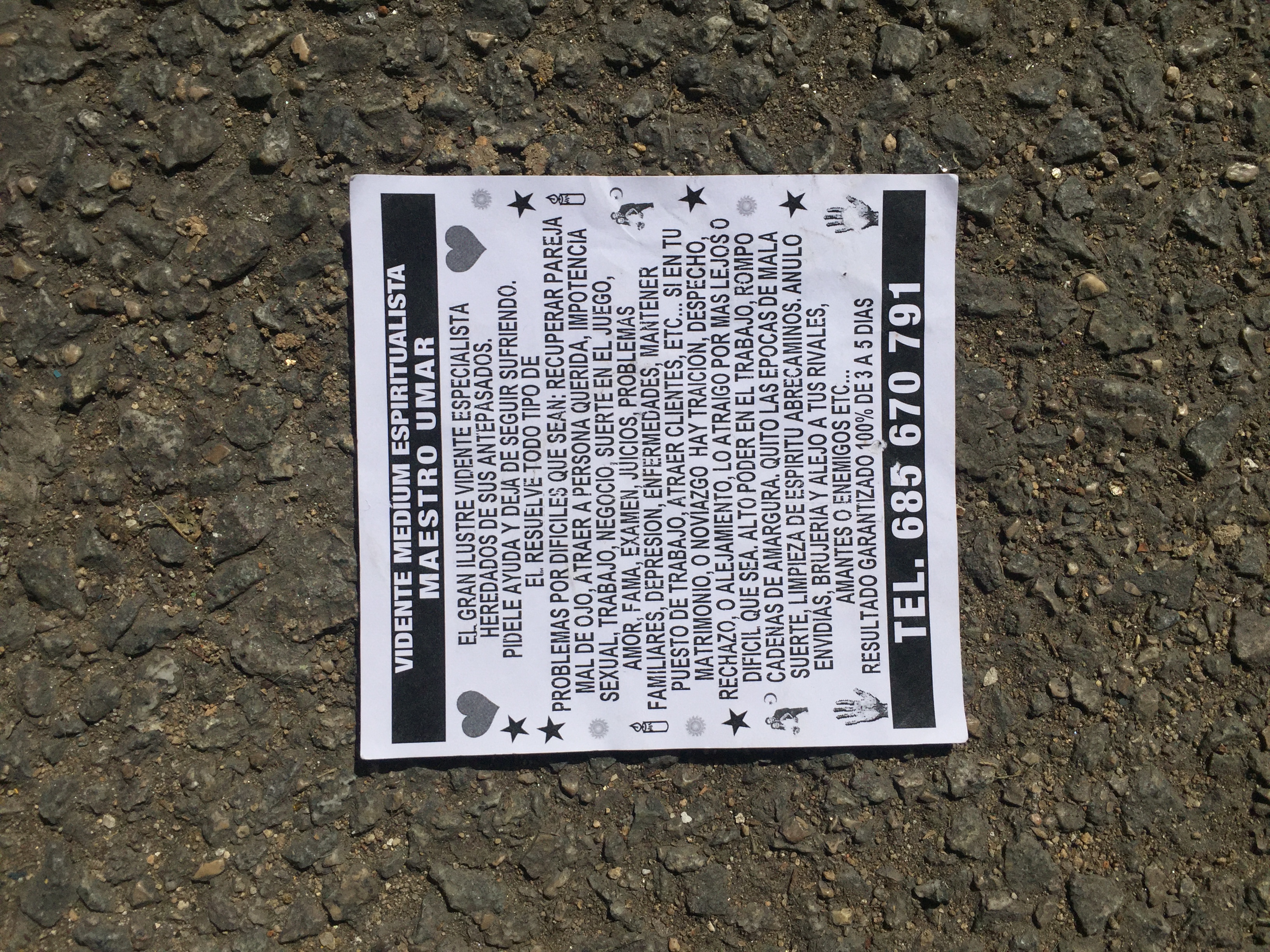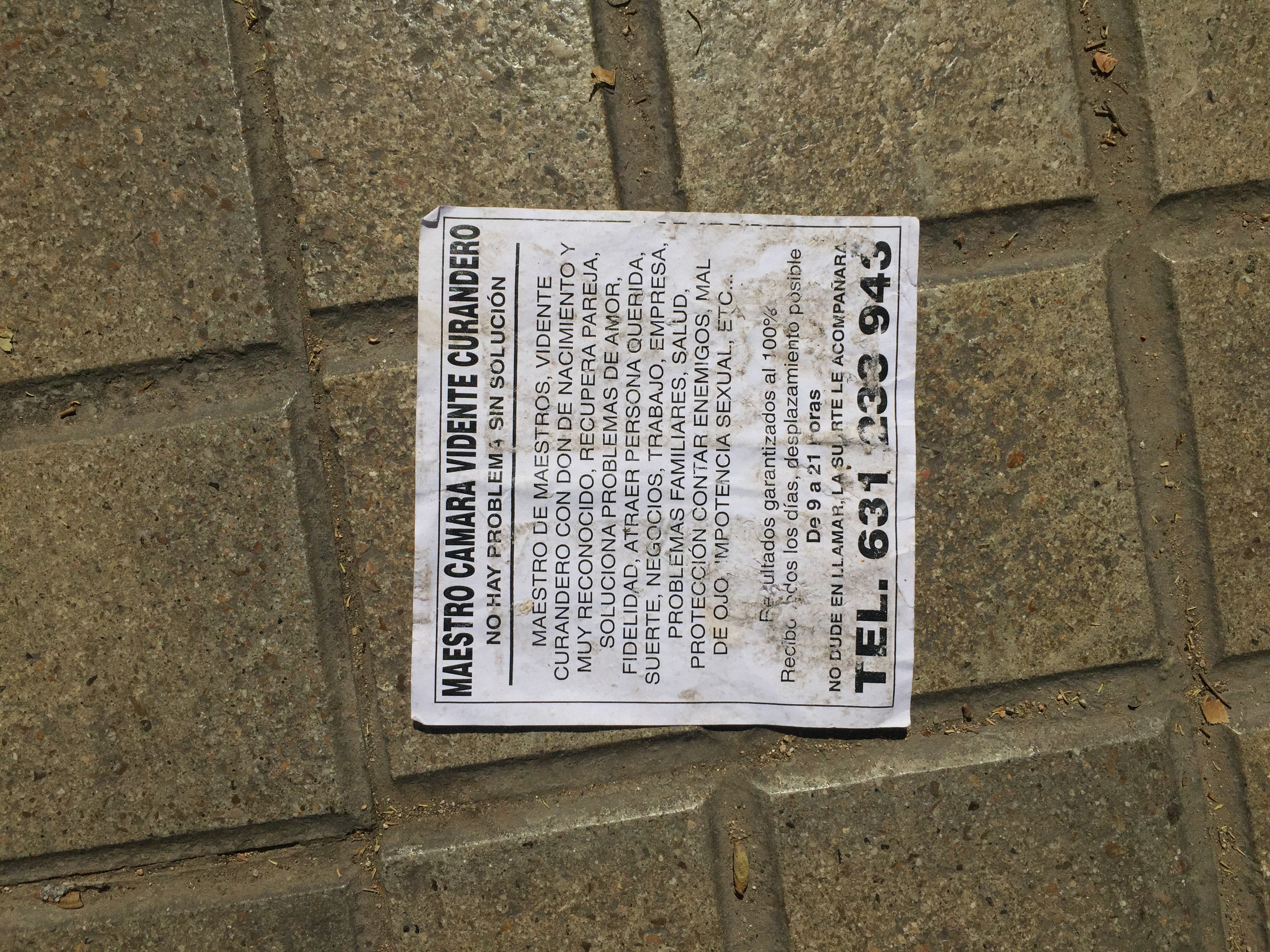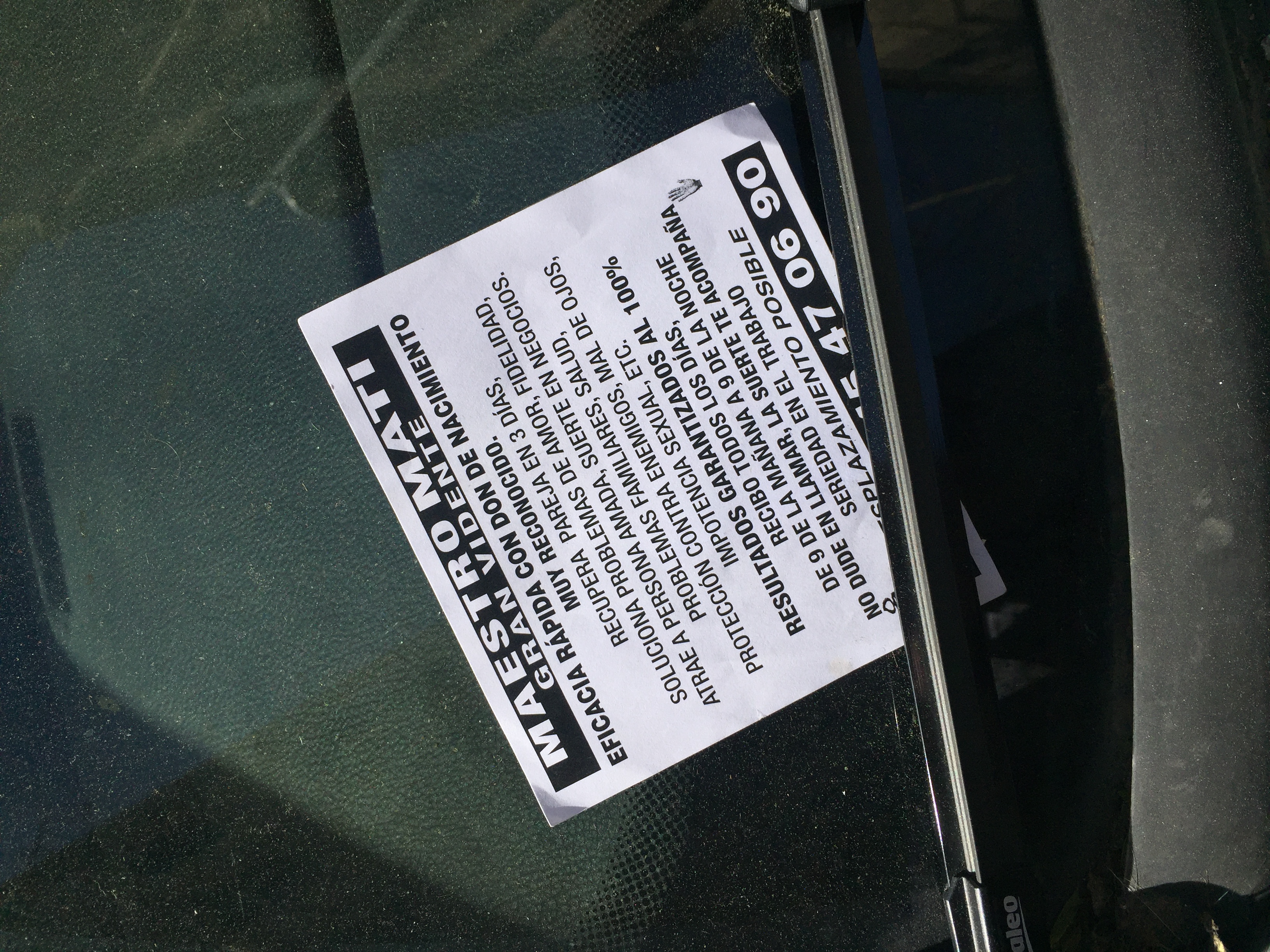 This action guarantees them that the owner of the car (often a resident of the "barrio") will pick up the flyer, either because they are interested in it or because, affecting the aesthetic value of their vehicle, they prefer to throw it away.