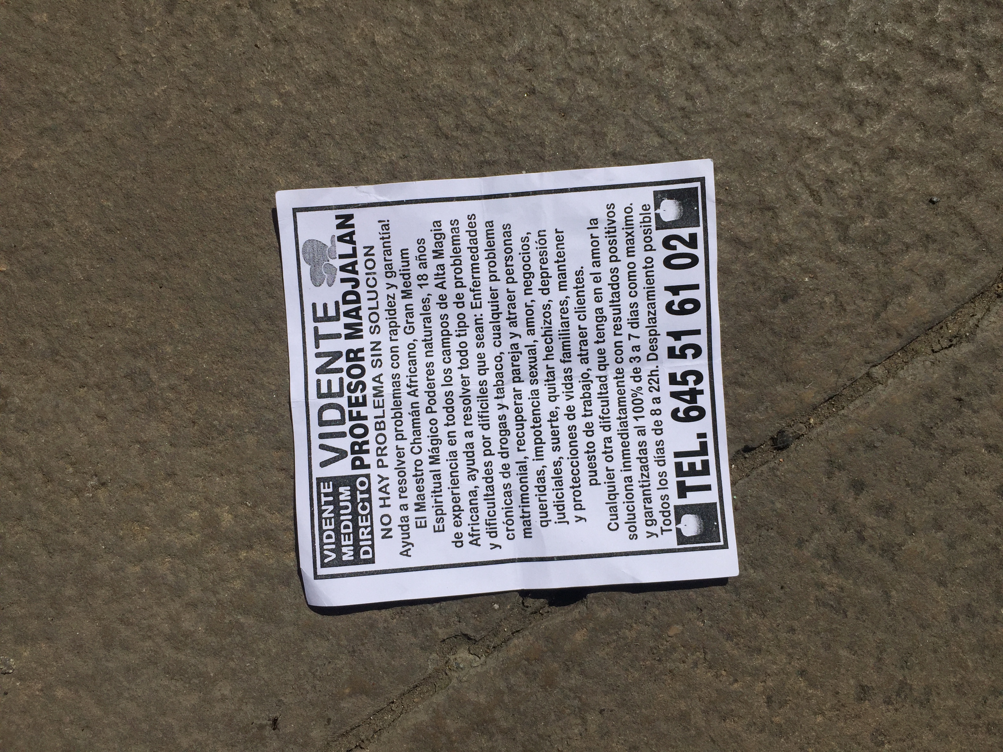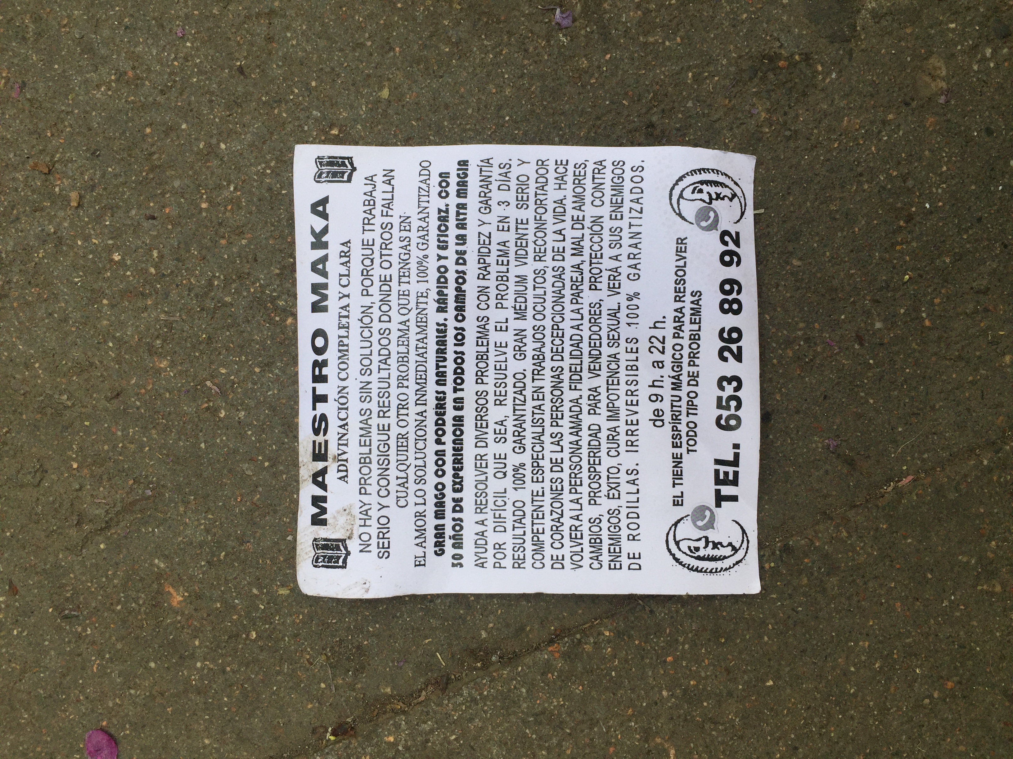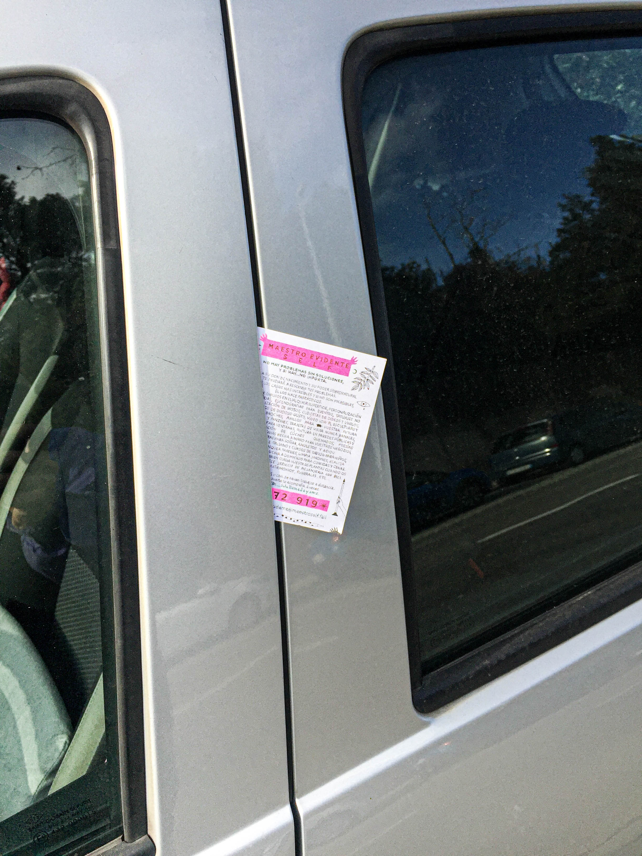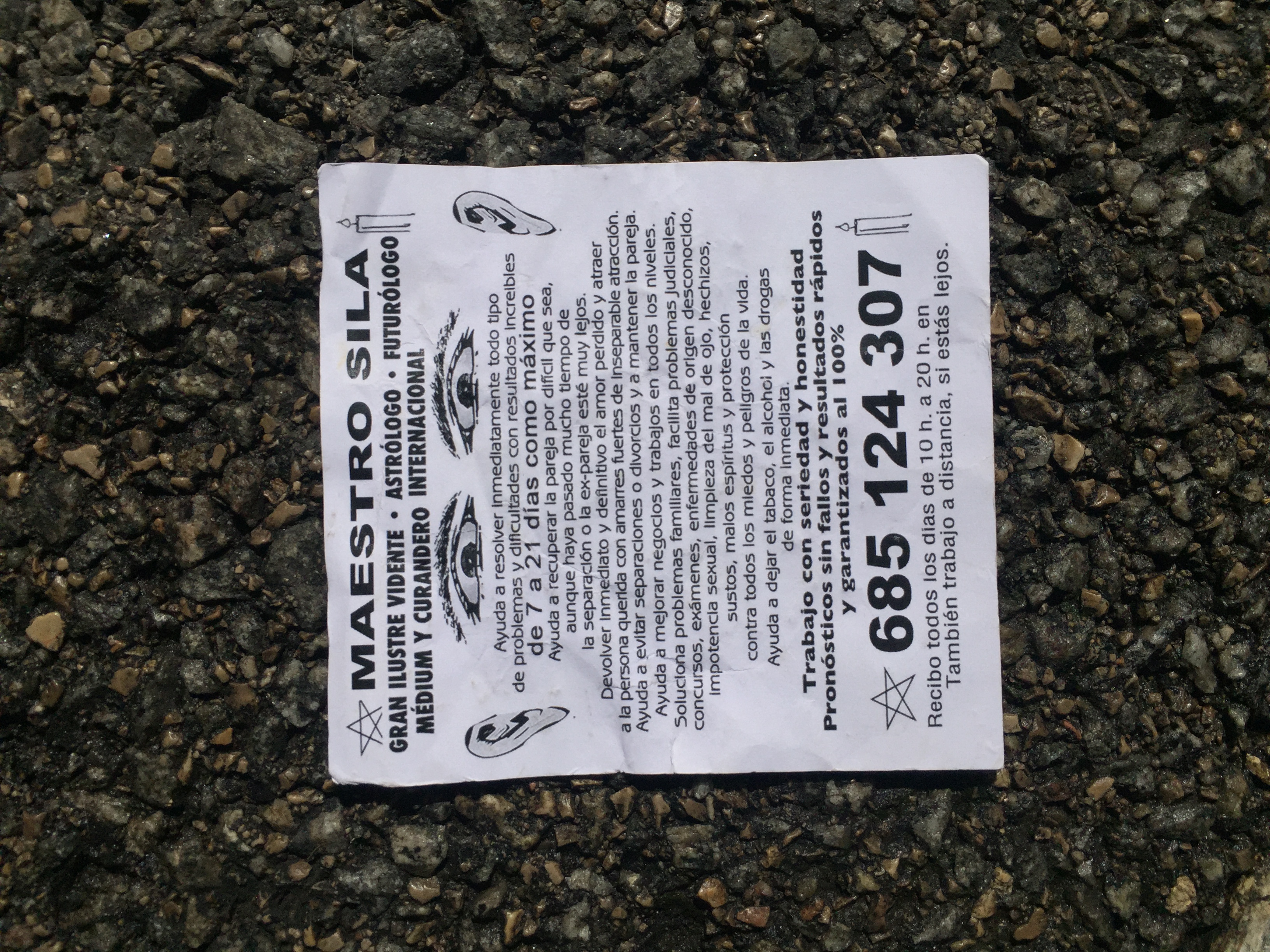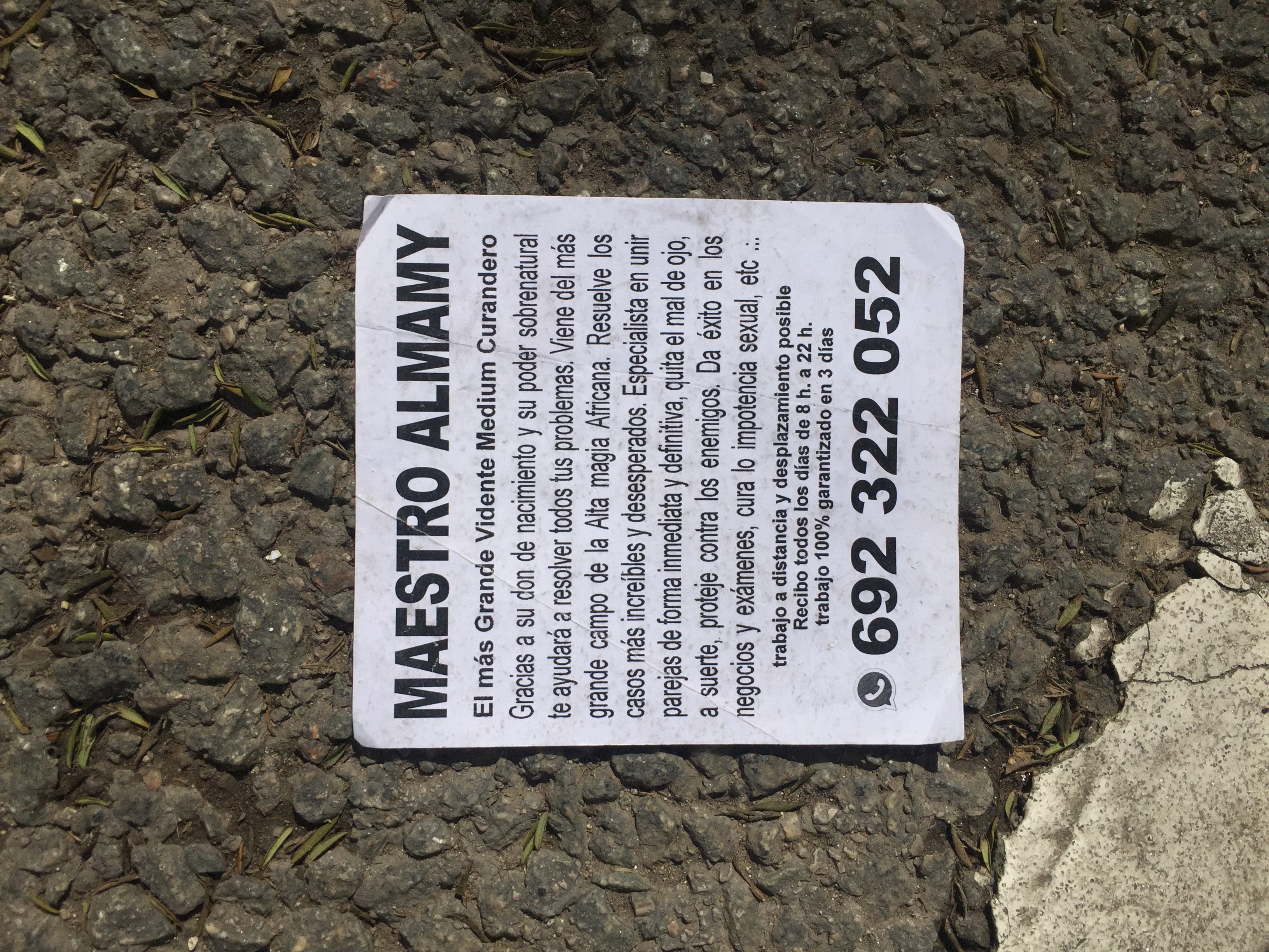 This action guarantees them that the owner of the car (often a resident of the "barrio") will pick up the flyer, either because they are interested in it or because, affecting the aesthetic value of their vehicle, they prefer to throw it away.