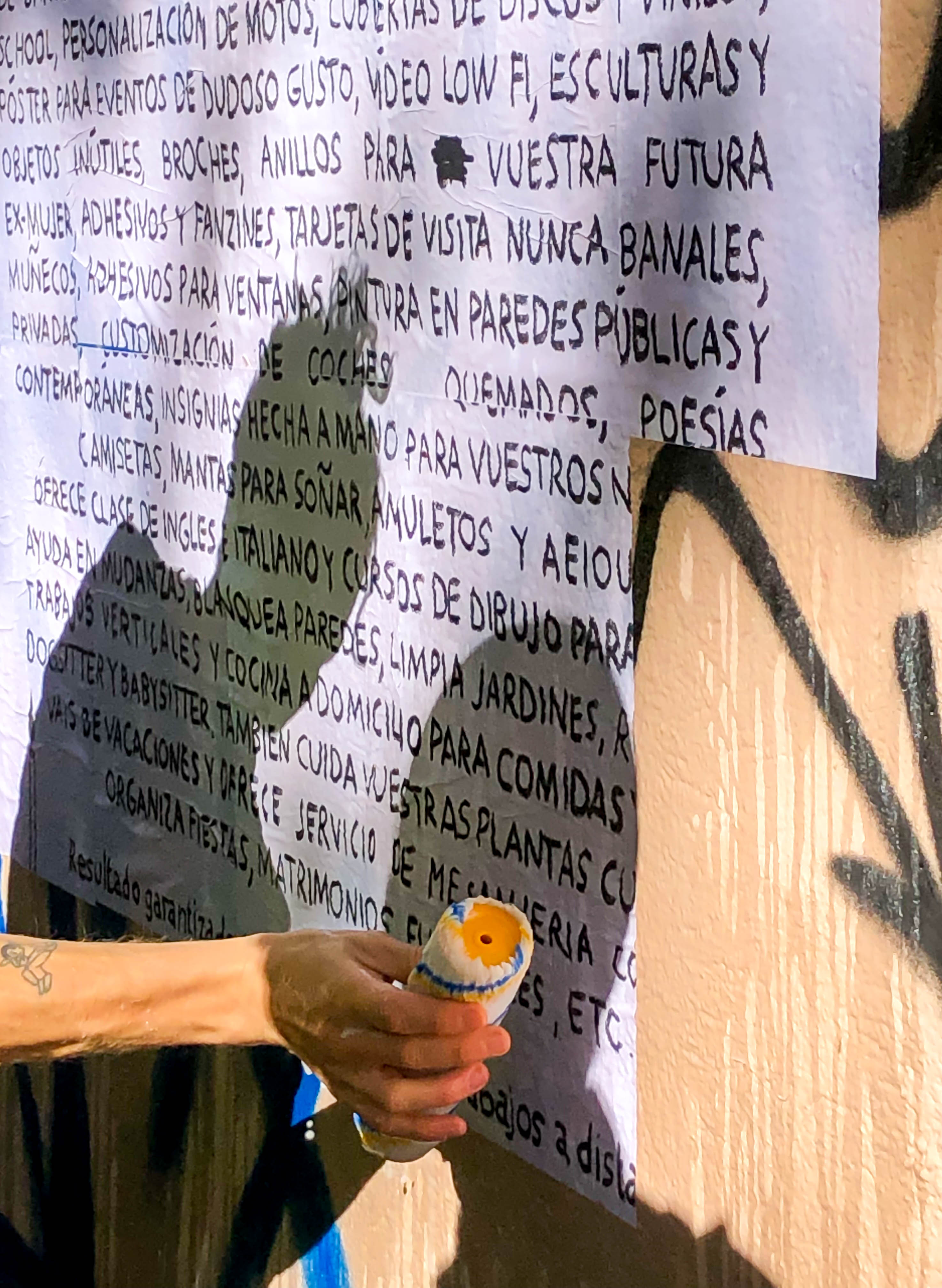 Altering the size of the flyers previously produced allows me to interact with the urban space in a different way by "invading" it and taking possession of a wall so as to reach a wider number of people.