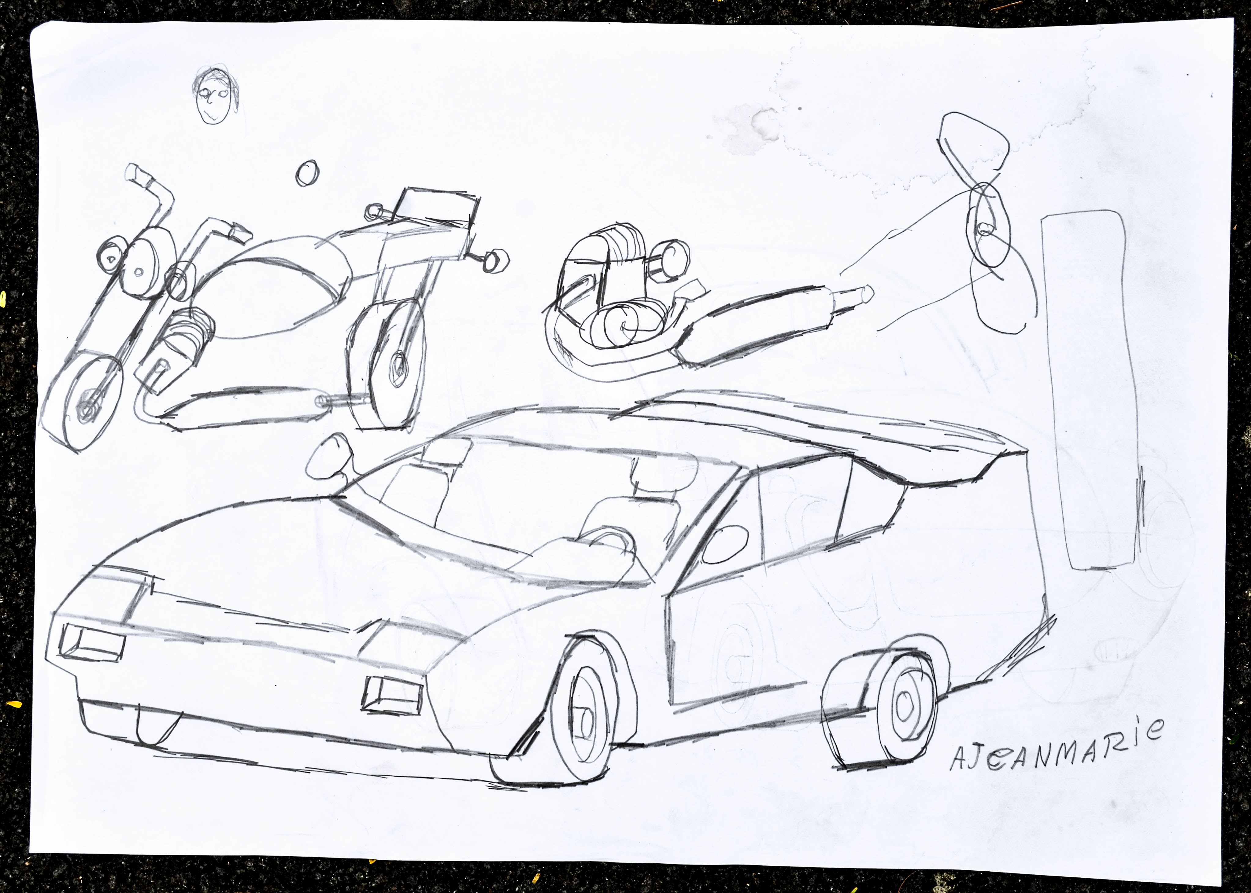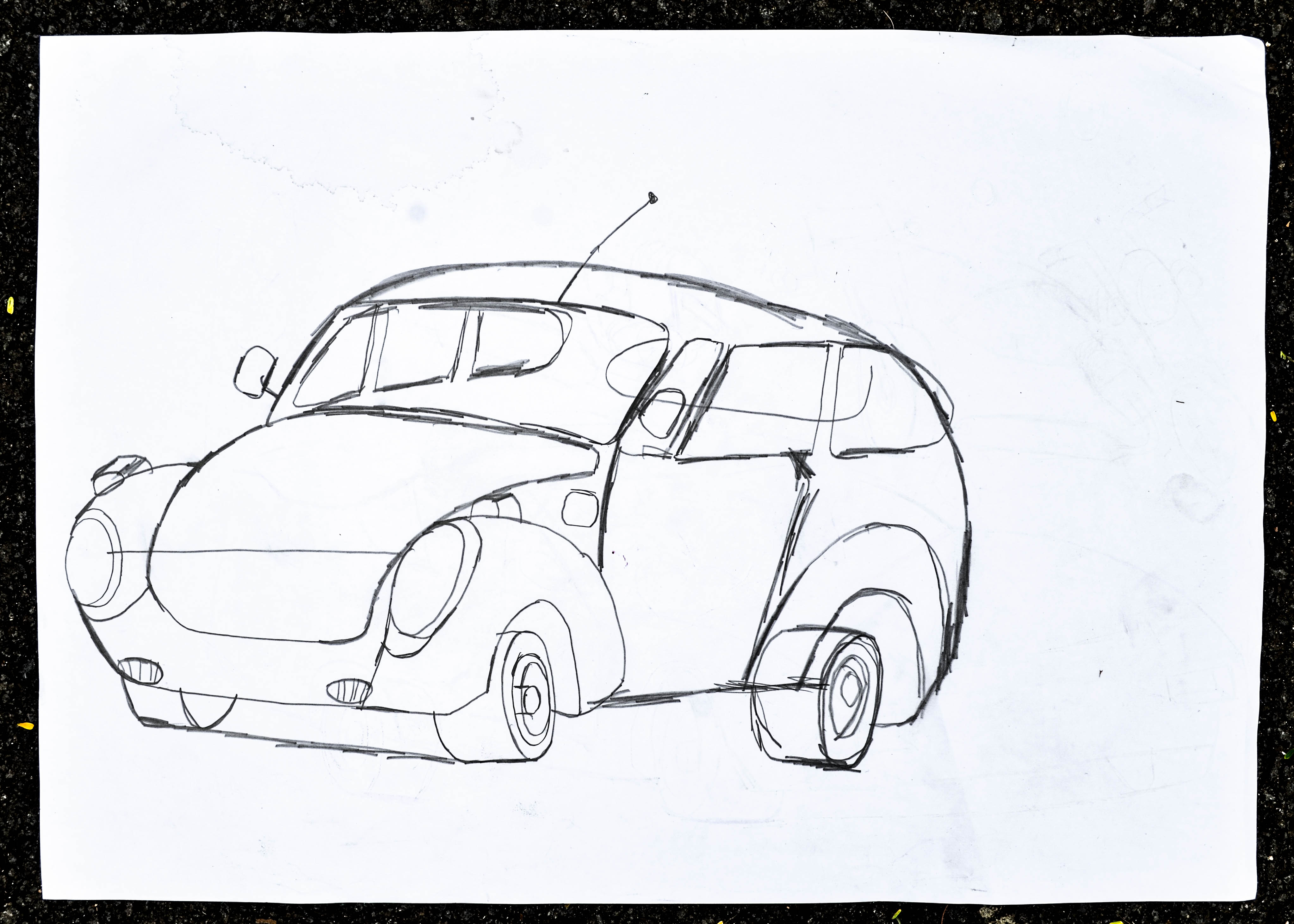 And in the meantime he turned the paper over and starts drawing another car, apparently faster than the other, a sort of speed car.