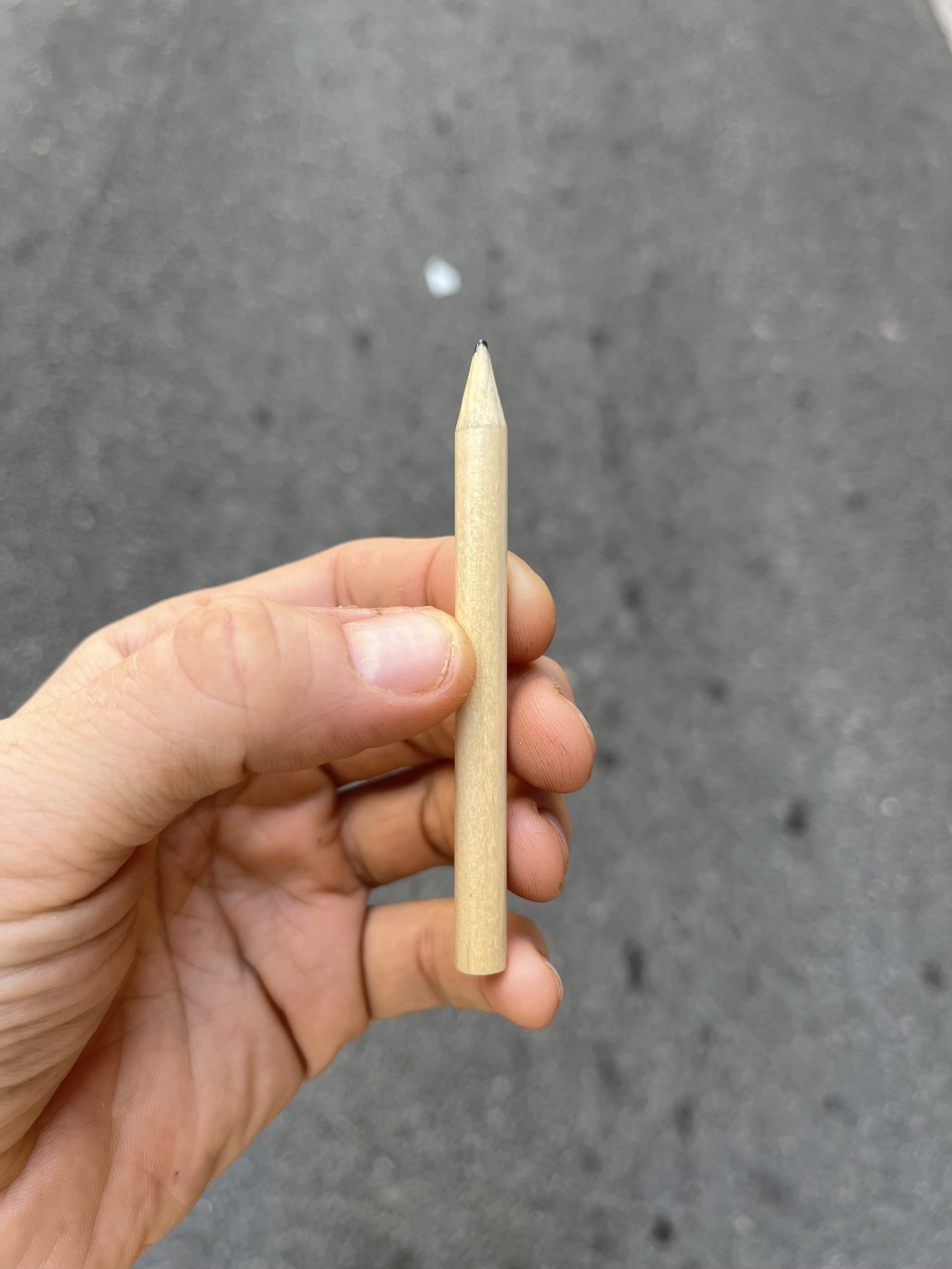 Before leaving the store, I found a small pencil on a table next to the checkout counter, the kind used to fill in the lottery tickets. I took it.
