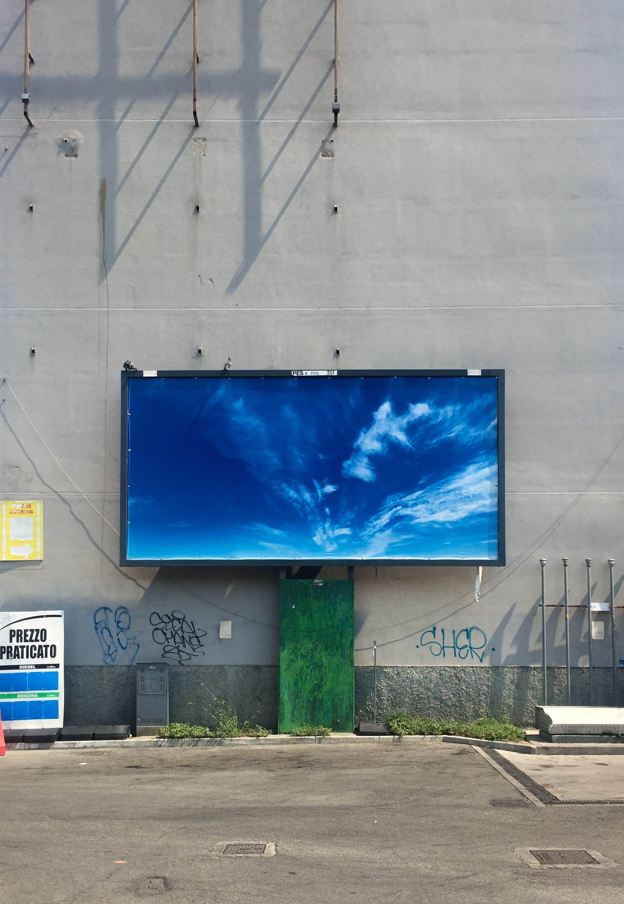 Blue skies printed on billboards, electric pedestals camouflaged with forest patterns, waterfalls paintings welcoming us in buildings and much much more...