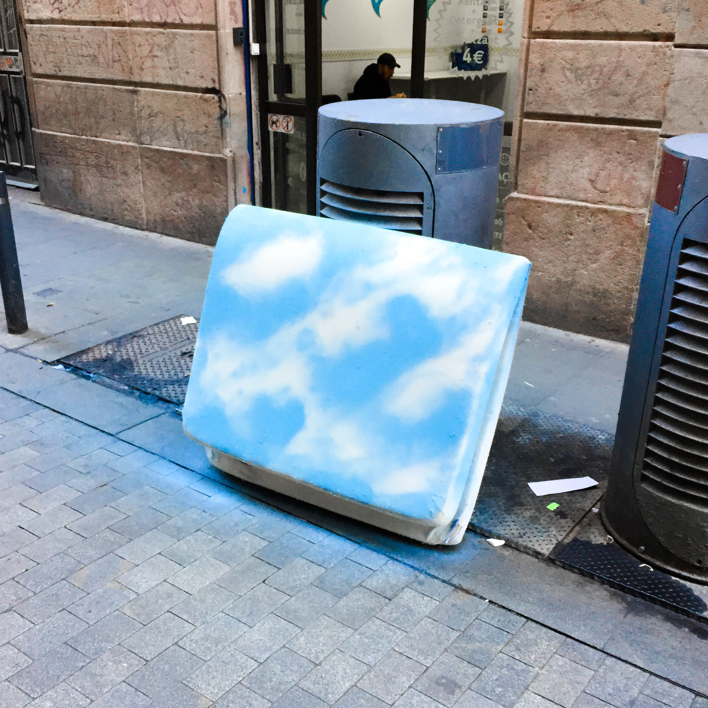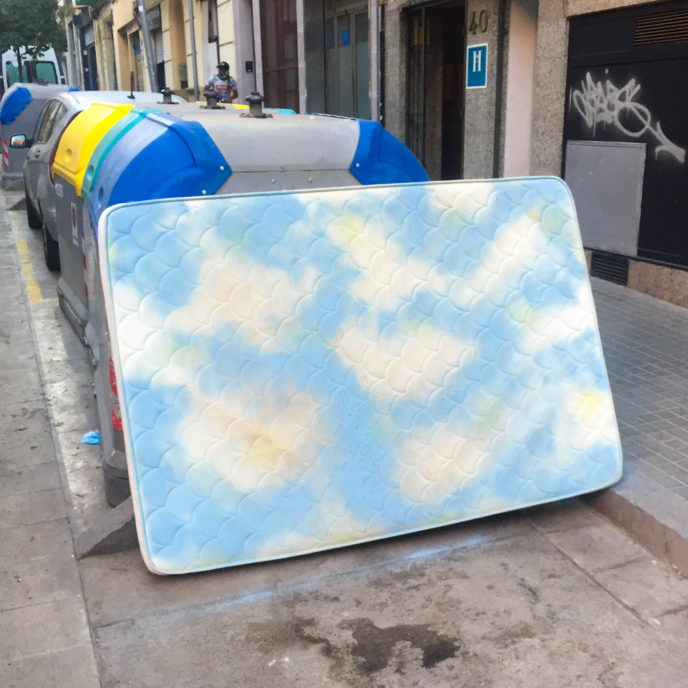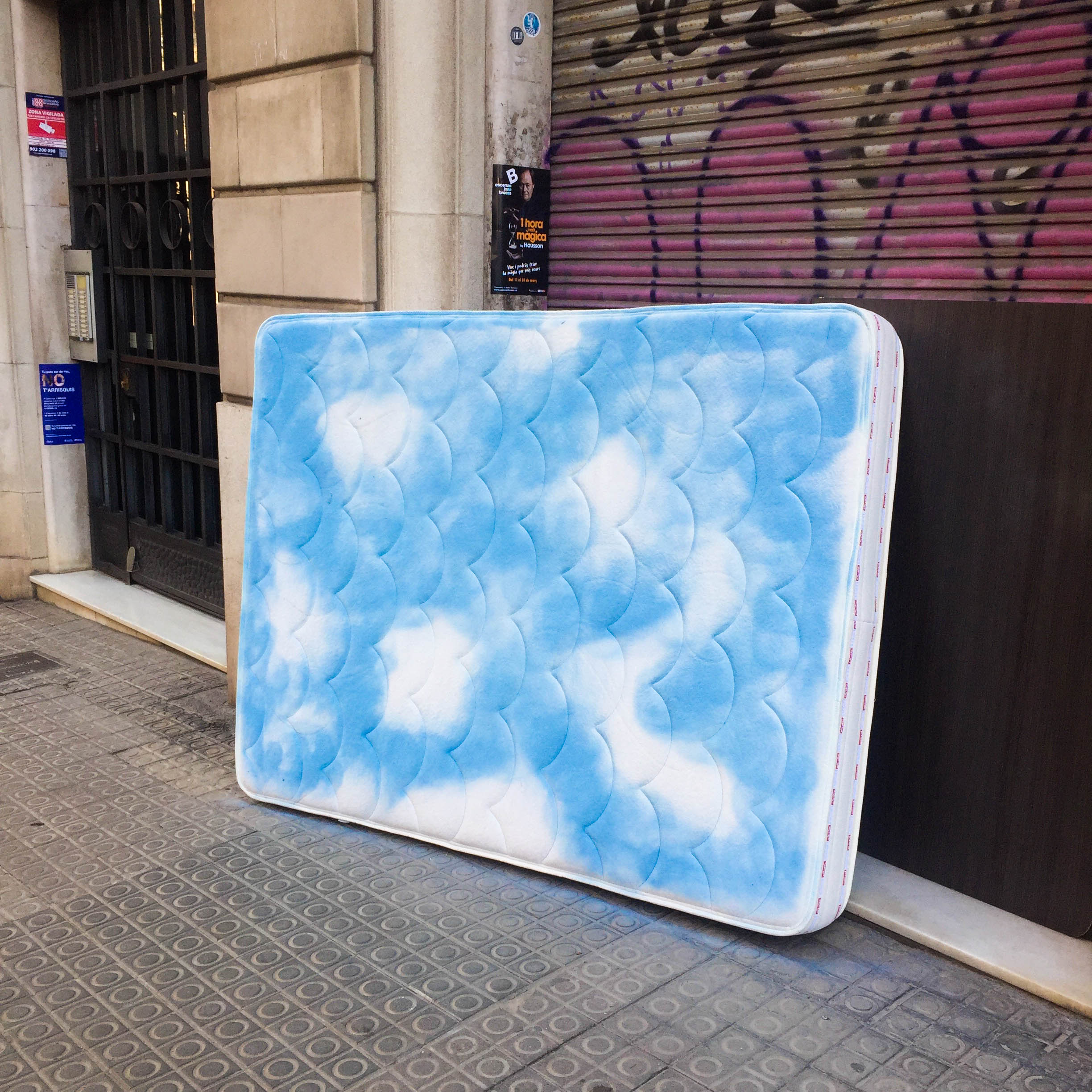 For the past year I have been trying to carry a spray can of 'sky blue' in my backpack so that I am always ready to define the sky on the mattresses I encounter on my walk.