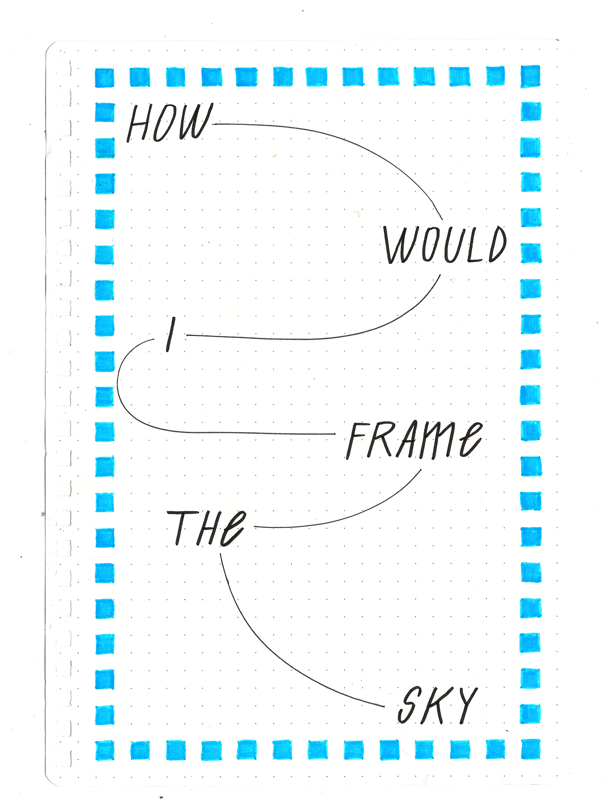 One may encounter frames that enclose a field of wheat, or houses or trees or, more commonly, the sky.